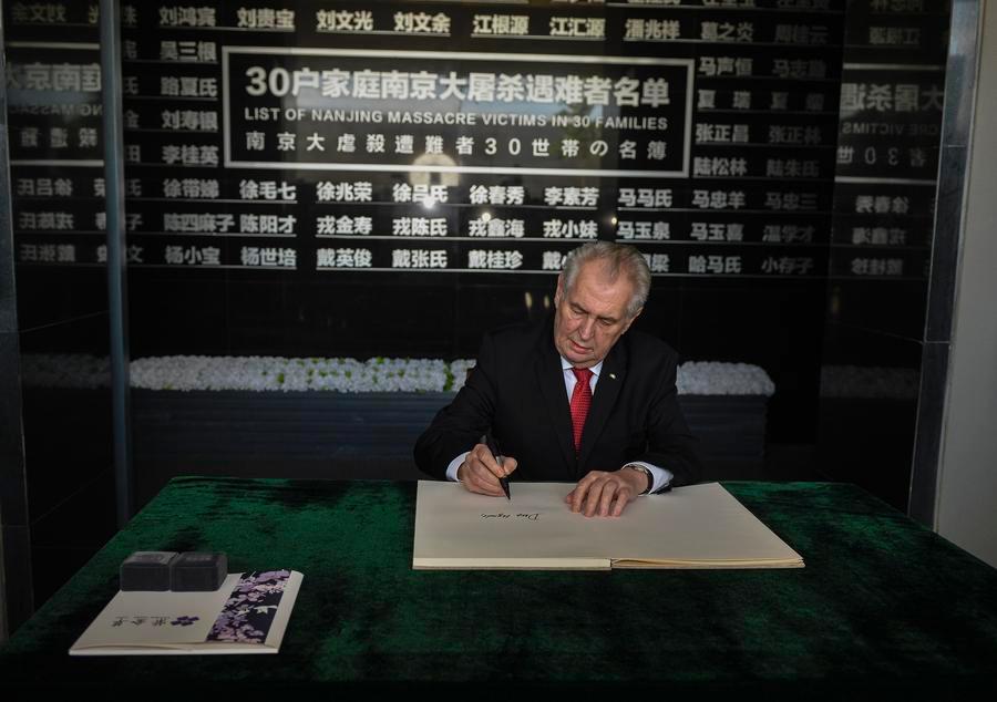 Czech President Milos Zeman Tuesday visited the Memorial Hall for the Victims of the Nanjing Massacre in East China's Jiangsu province.