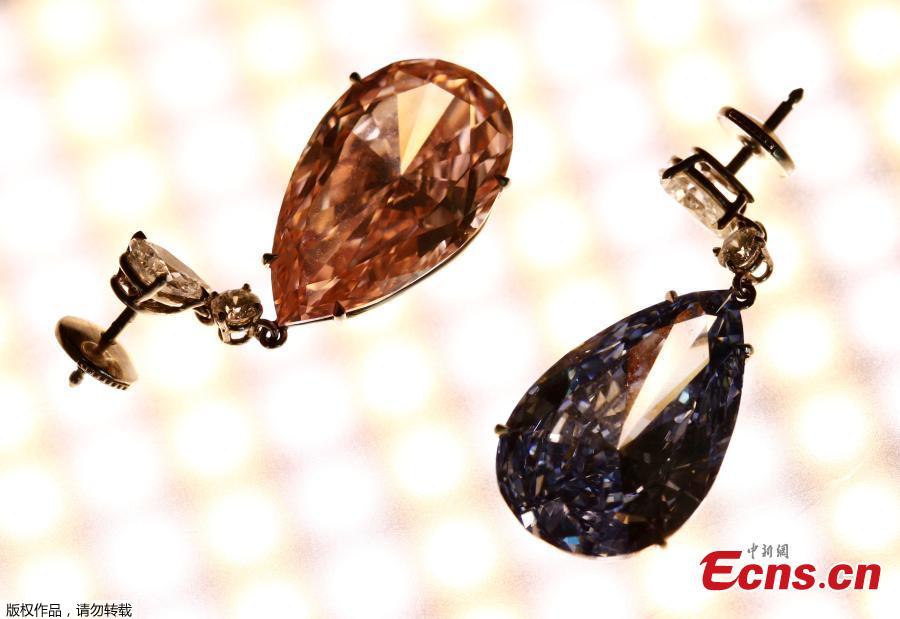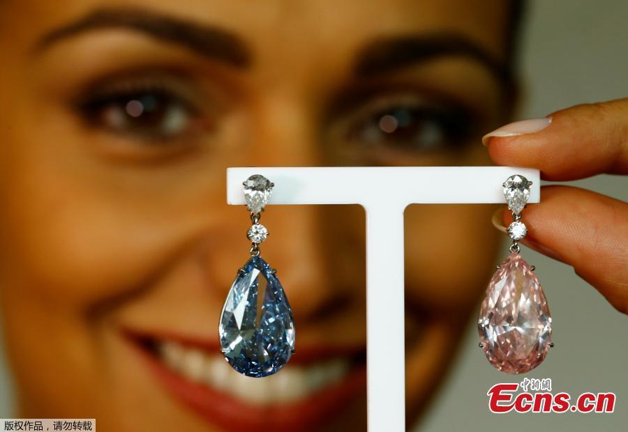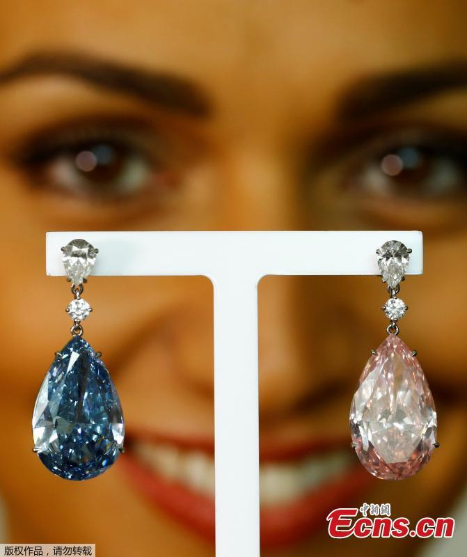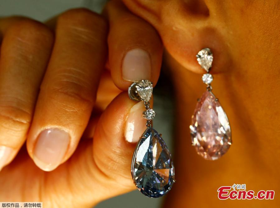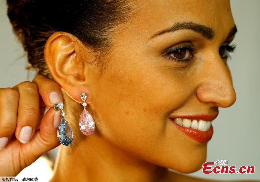 A pair of diamond earrings were sold at auction in Geneva for a record-breaking price of $57.4m on May 16, 2017. The pear-shaped jewels, nicknamed Apollo and Artemis, are almost 16 carats each. The flawless stones mined in South Africa are perfectly matched except for their colour - Artemis is pink, and Apollo is blue. The earrings were bought by an anonymous buyer. Apollo sold for $42.1m while Artemis went for $15.3m. The pure vivid blue of Apollo - from the Cullinan mine in South Africa - is rarer, and therefore worth more than the intense pink Artemis. (Photo/Agencies)