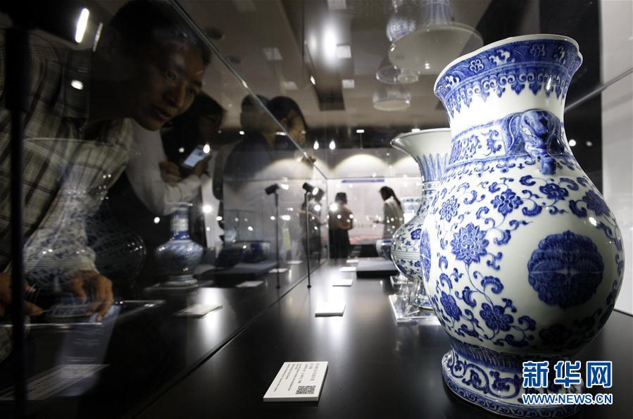 Visitors admire blue and white porcelain vases on exhibition at Shanghai Science and Technology Museum yesterday. The exhibition is a highlight of this year's Shanghai Science Festival. (Photo/Xinhua)