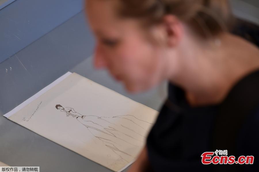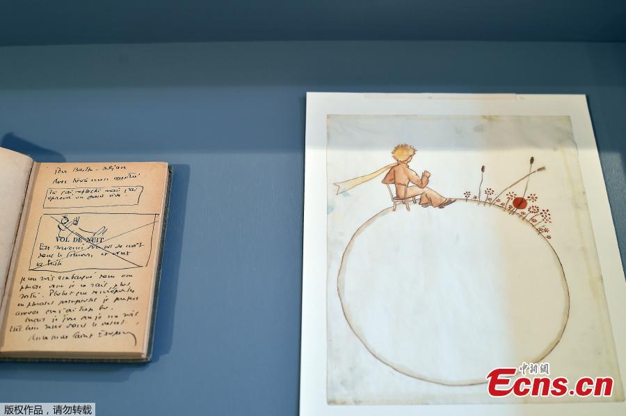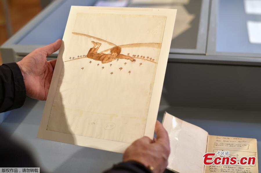 An original watercolor illustration from Antoine de Saint-Exupery's masterpiece The Little Prince is on display before going up for auction next month at a museum in Toulouse, France, May 17, 2017. The items on auction in Paris will include 12 illustrations and seven writings. (Photo/Agencies)