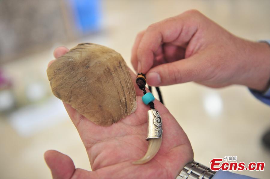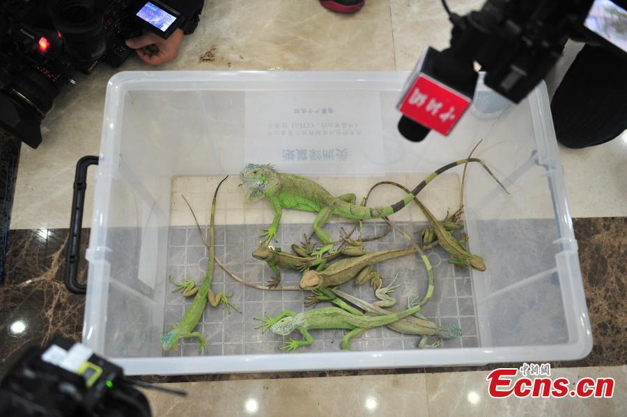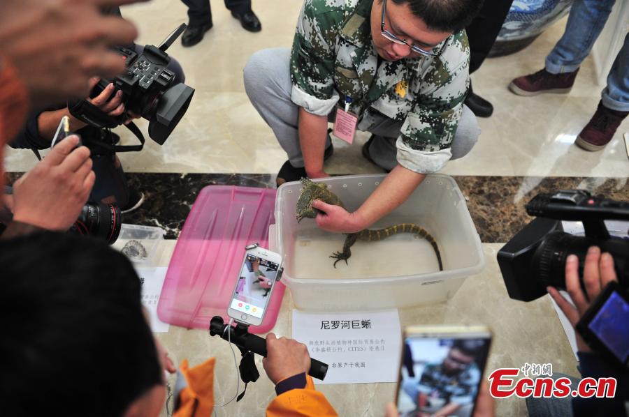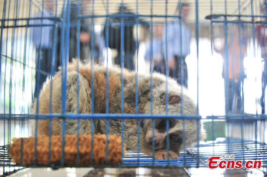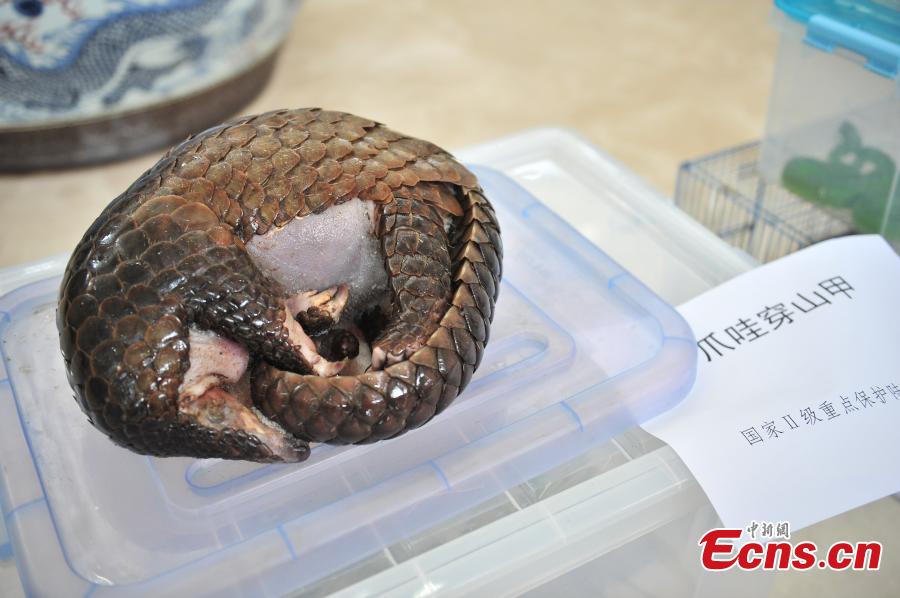 Photo taken on May 18, 2017 shows live animals and animal products seized by police in raids against wildlife smugglers in Honghe Hani and Yi Autonomous Prefecture, Southwest China’s Yunnan Province. Police caught 20 people suspected to have smuggled wildlife through the Internet and also found a total 90 animals and animal products, the largest case against online smuggling. (Photo: China News Service/Liu Ranyang)
