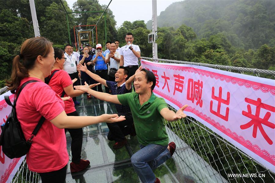 A couple pose for photos at the Baofeng Lake scenic area of Zhangjiajie, central China's Hunan Province, May 20, 2017. Many couples in China chose to register for marriage or get married on May 20 as the pronunciation of "520" is homophonic for "I Love You" in Chinese.(Xinhua/Wu Yongbing)