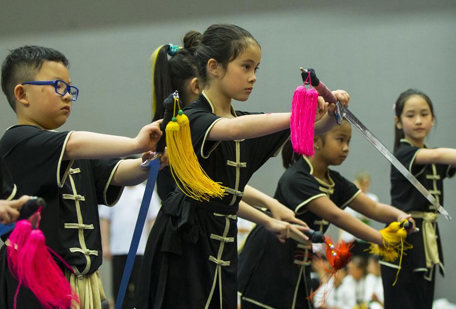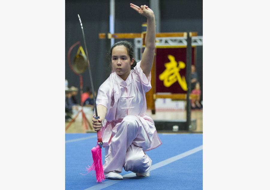 A participant performs Daoshu at the international martial arts festival in Markham just outside Ontario, Canada, on May 20, 2017. Broadswords are used as weapons in Daoshu, which originates from ancient Chinese military training. (Photo/Xinhua)