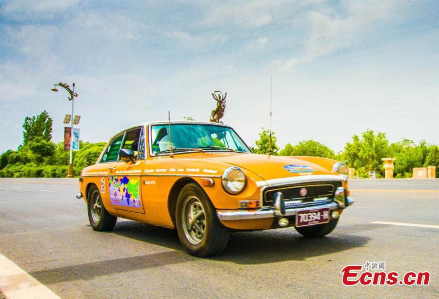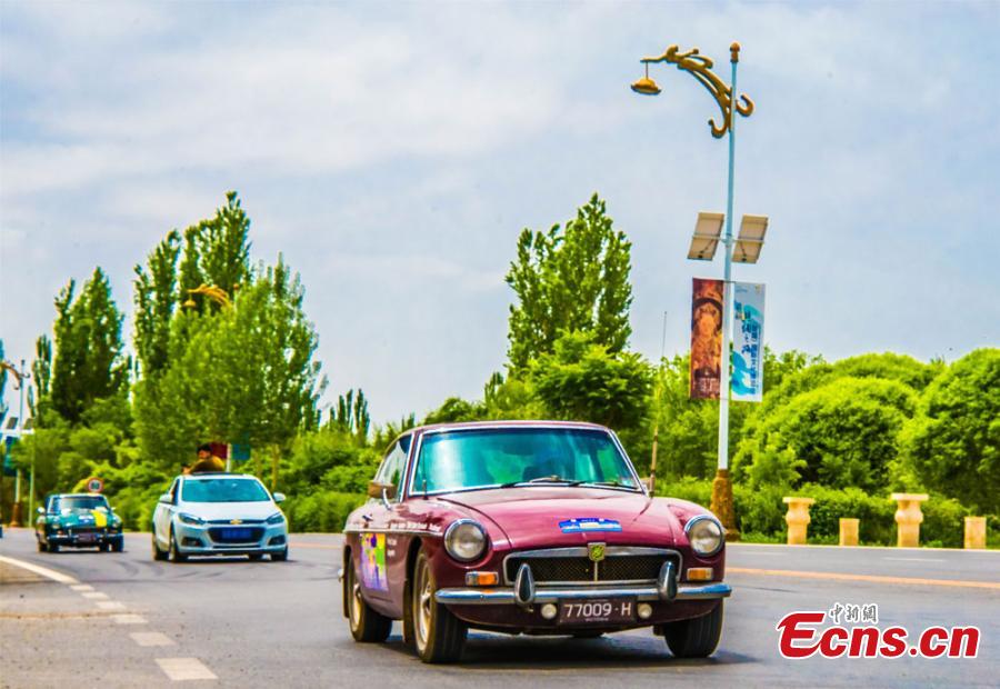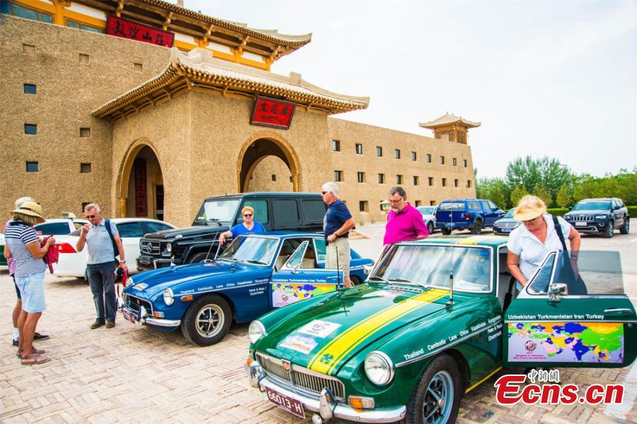 A motorcade of vintage cars from Australia arrive in Dunhuang City, Northwest China’s Gansu Province, May 21, 2017. The motorcade of eight cars and 17 people departed from Bangkok, Thailand and entered China in Yunnan Province to drive along the ancient Silk Road trade route. (Photo: China News Service/Wang Binyin)