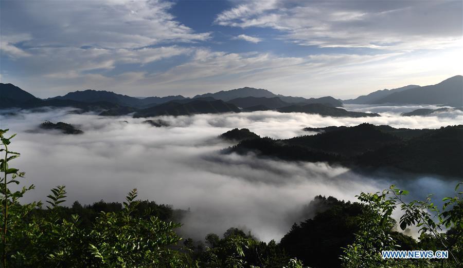 Photo taken on May 23, 2017 shows sea of clouds in Jiutai Taoist Temple scenic spot in Ningqiang County of Hanzhong, northwest China's Shaanxi Province. (Xinhua/Tao Ming)