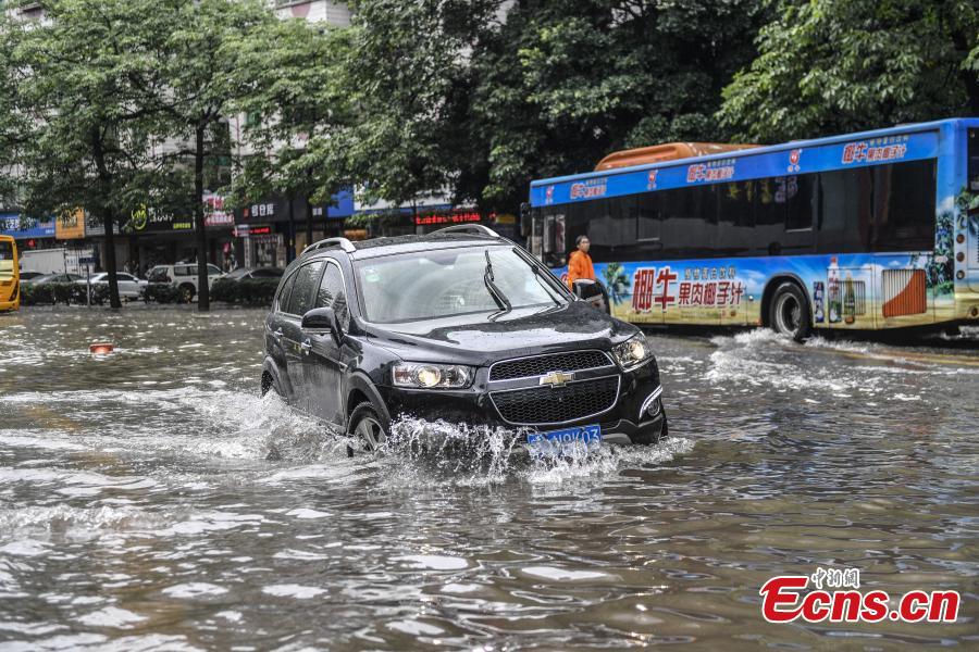 A street floods after strong rainfall in Guangzhou City, the capital of South China’s Guangdong Province, May 24, 2017. Guangzhou has started emergency response to the rainstorm. (Photo: China News Service/Chen Jimin)