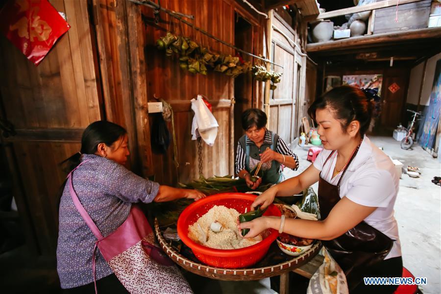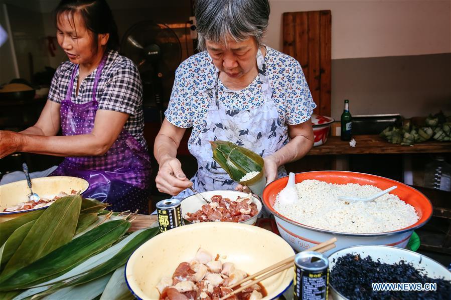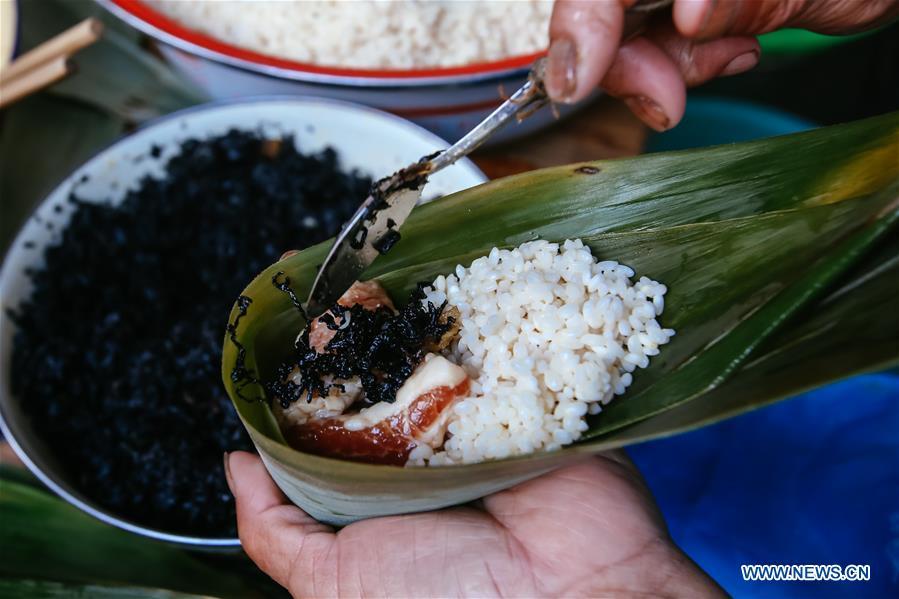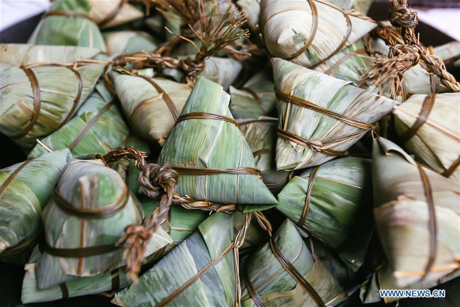 Photo taken on May 25, 2017 shows steamed Zongzi, a pyramid-shaped dumpling made of glutinous rice wrapped in bamboo or reed leaves, in Songyang County, east China's Zhejiang Province. The Dragon Boat Festival of this year will fall on May 30. (Xinhua/Zhang Cheng)
