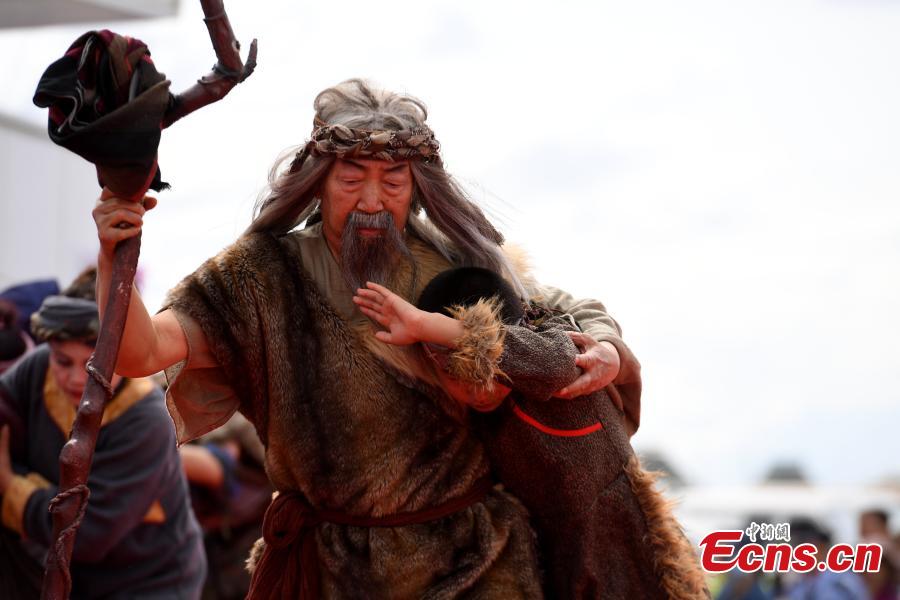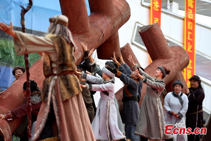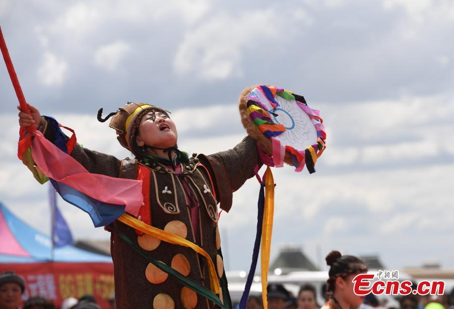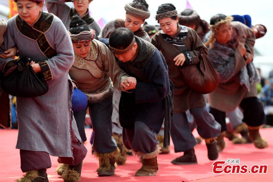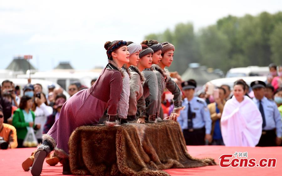 People of the Daur ethnic group perform to celebrate the traditional Kumule Festival in Qiqihar city, Northeast China's Heilongjiang Province, June 3, 2017. (Photo: China News Service/Wang Shu)