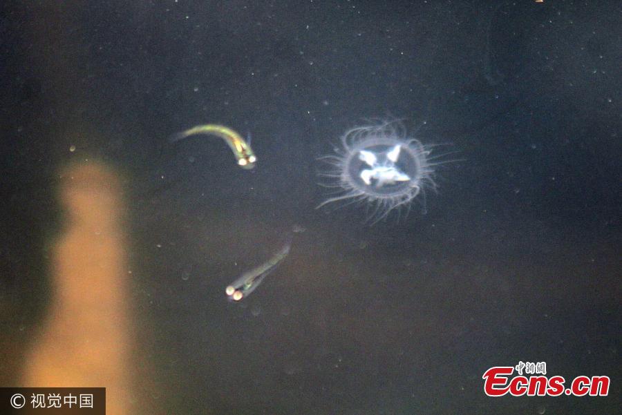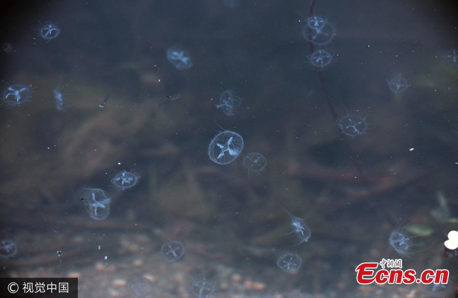 Craspedacusta sowerbiiis, a freshwater jellyfish, swims in Mengzi Lake in Zoucheng City, East China’s Shandong Province, June 3, 2017. The jellyfish is known to have existed for 550 million years and is of high research and aesthetic value. The species demands a high-quality living environment, so its existence in large numbers shows water quality in the city has improved significantly. (Photo/VCG)