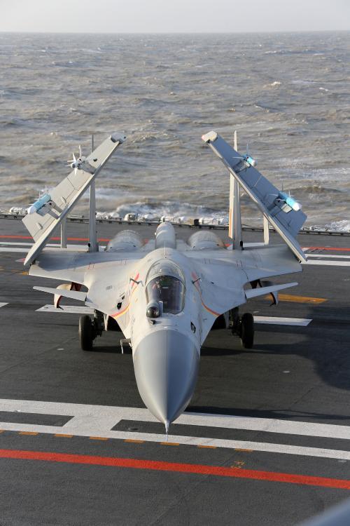 The undated photo shows Chinese aircraft carrier Liaoning carrying J-15 fighter. J-15 fighter jets have recently conducted flight training on the carrier. Liaoning, a refitted Soviet Union-made carrier, was put into commission by the Chinese People's Liberation Army (PLA) Navy in 2012. (Photo/81.cn)