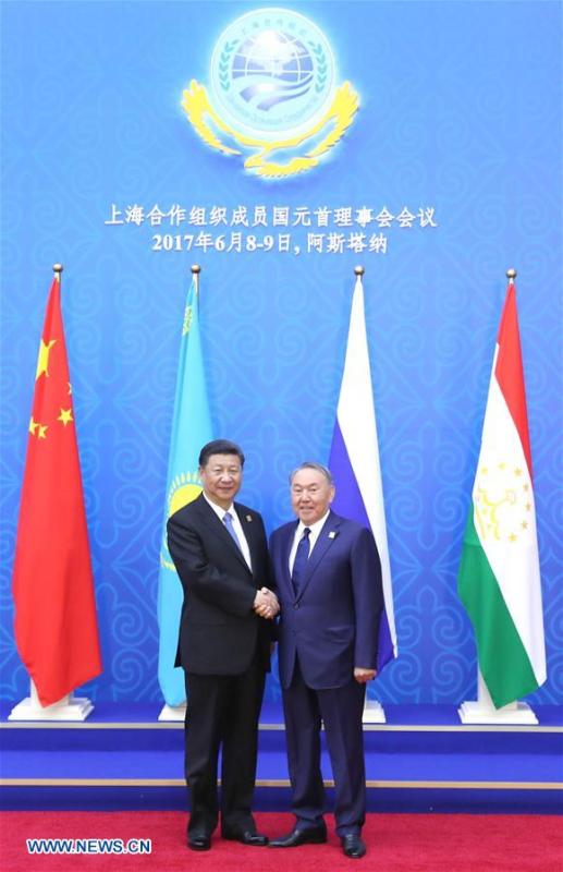 Chinese President Xi Jinping (C) addresses the 17th meeting of Council of Heads of States of the Shanghai Cooperation Organization (SCO) in Astana, Kazakhstan, June 9, 2017. (Xinhua/Pang Xinglei)