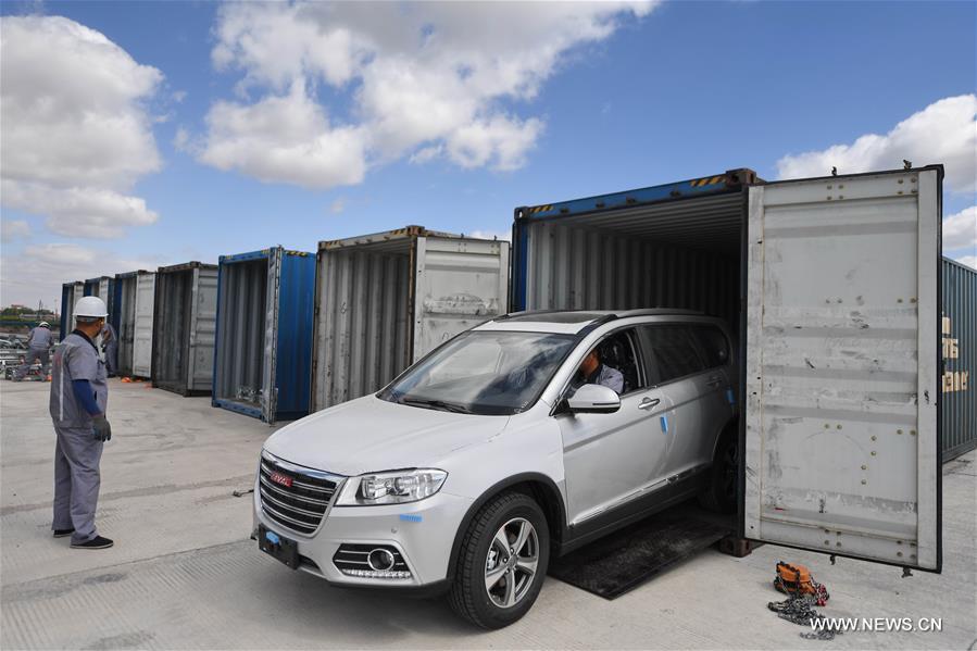 Haval series of China's major SUV maker, Great Wall Motors, wait to be exported to Russia through the Changchun-Manzhouli-Europe International Rail Freight Line at a land port in Changchun, capital of northeast China's Jilin Province, June 9, 2017. (Xinhua/Zhang Nan)