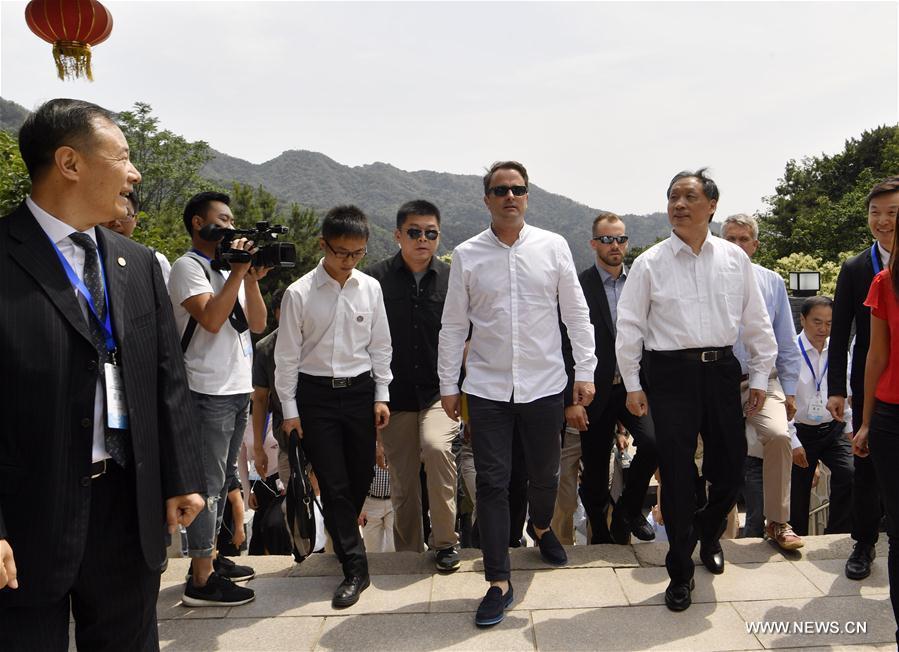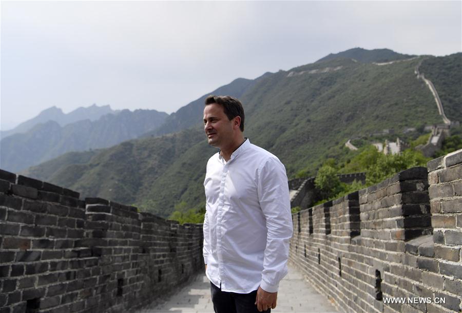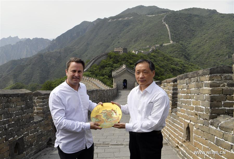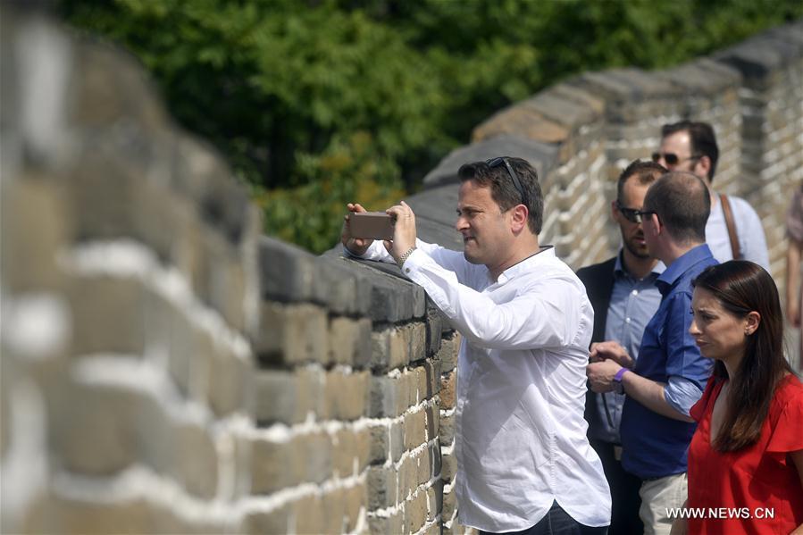 Luxembourg's Prime Minister Xavier Bettel (1st L), who is paying an official visit to China, visits the Mutianyu section of the Great Wall in Beijing, capital of China, June 11, 2017. (Xinhua/Jin Liangkuai)