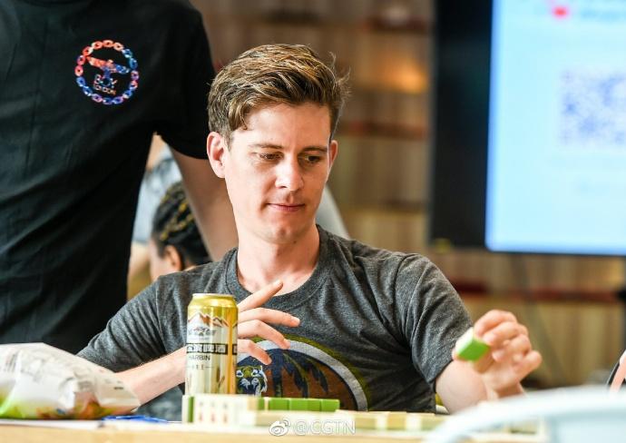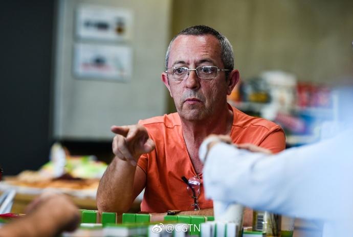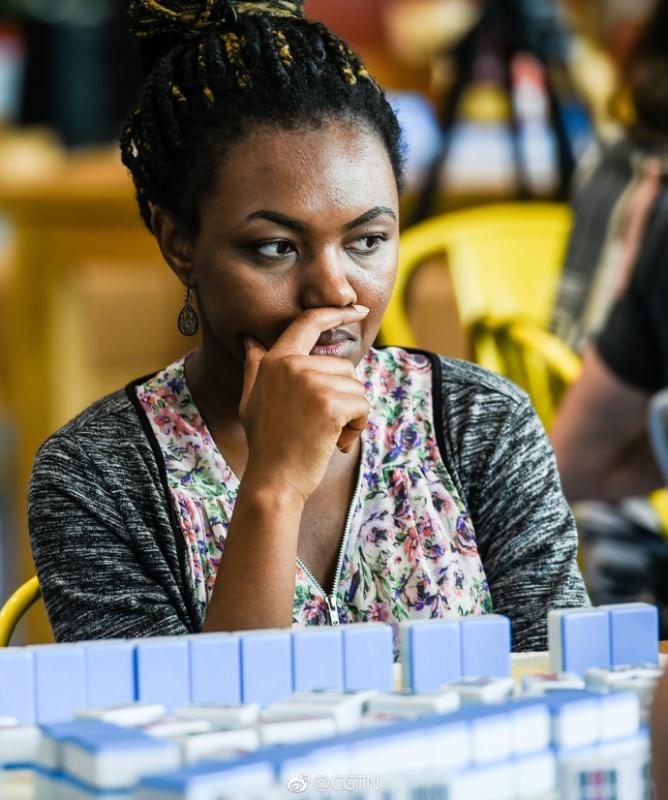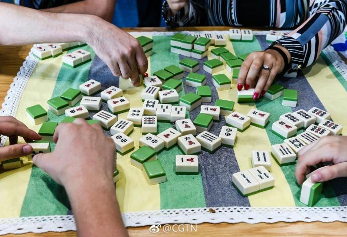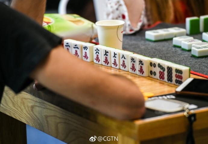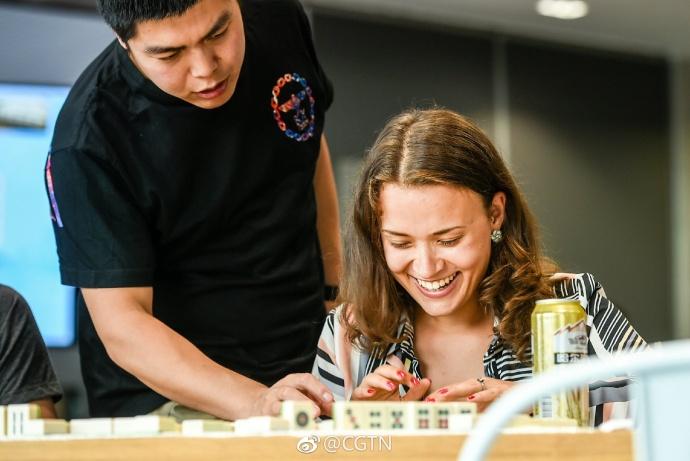 A woman learns to play mahjong during a class in Chengdu, Southwest China's Sichuan Province on Saturday. The student was one of around 15 foreigners who took the class taught in English. (Photo/CGTN Weibo account)