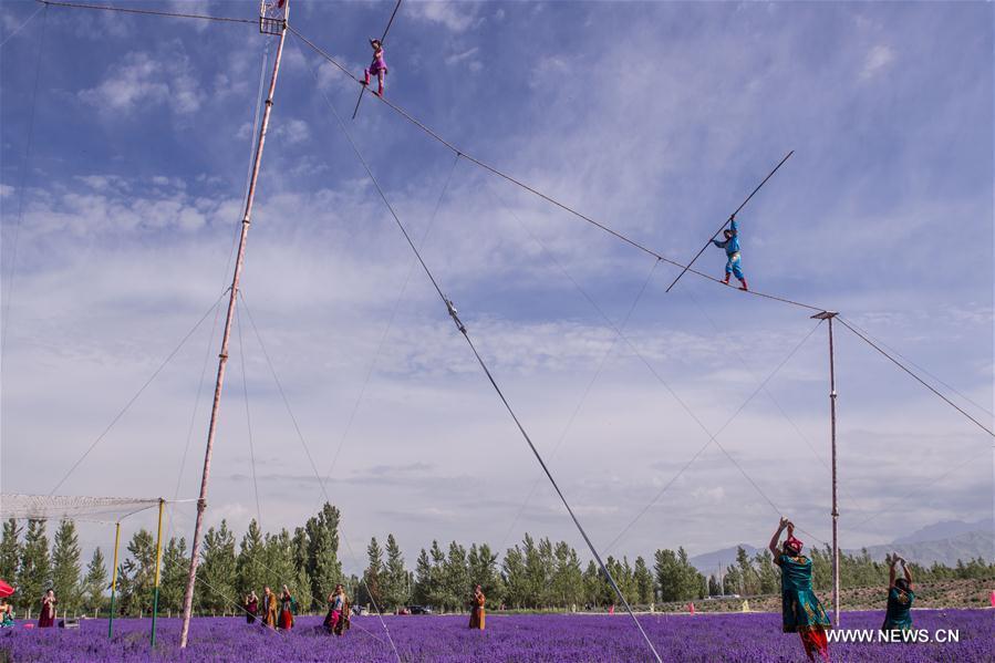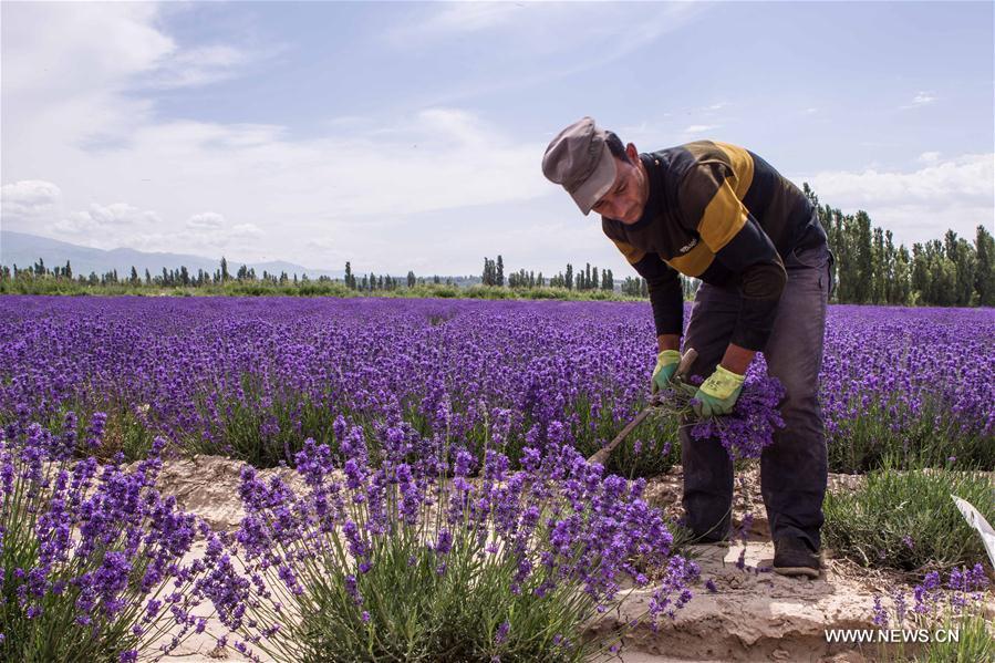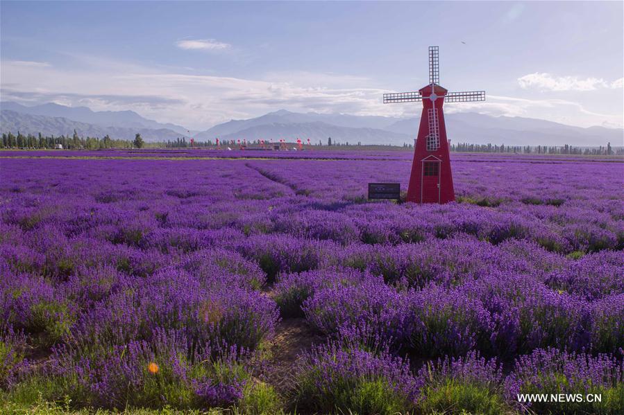 A lavender plantation is seen in Huocheng County in Ili Kazakh Autonomous Prefecture, northwest China's Xinjiang Uygur Autonomous Region, June 17, 2017. The 7th international lavender tourism festival started in Huocheng County on Saturday. (Xinhua/Cen Yunpeng)