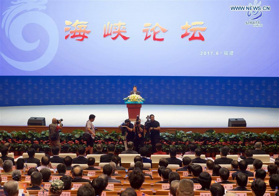 Yu Zhengsheng, chairman of the National Committee of the Chinese People's Political Consultative Conference, addresses the 9th Straits Forum in Xiamen, southeast China's Fujian Province, June 18, 2017. (Xinhua/Ma Zhancheng)