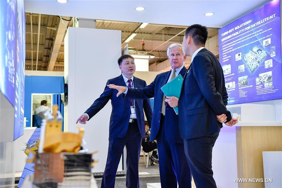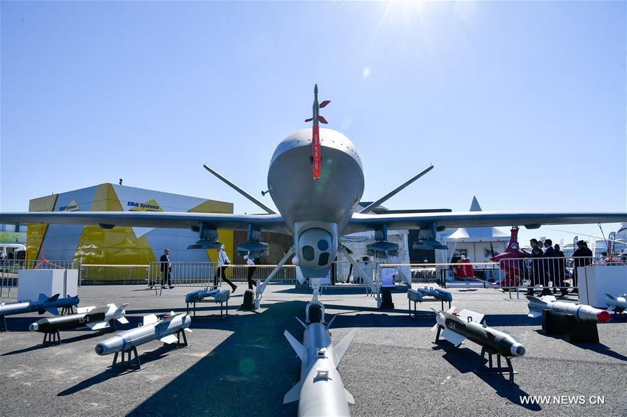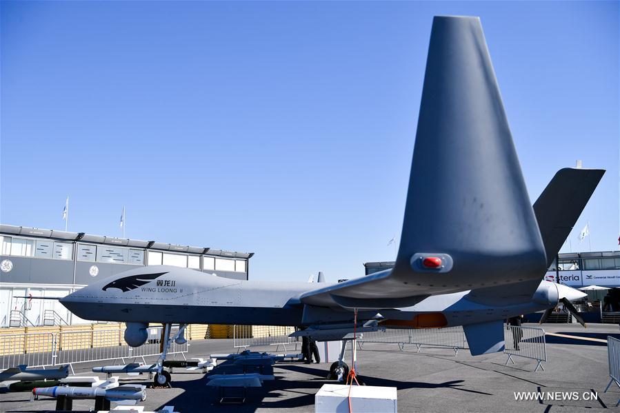 The model of a J-31 gyrfalcon stealth fighter plane designed by Aviation Industry Corporation of China is displayed during the 52nd International Paris Air and Space Show in Le Bourget near Paris, France, on June 19, 2017. The 52nd International Paris Air and Space Show kicked off on Monday to showcase the cutting-edge technology of today and the future of the air and space industry. (Xinhua/Chen Yichen)