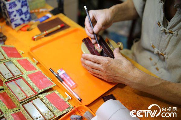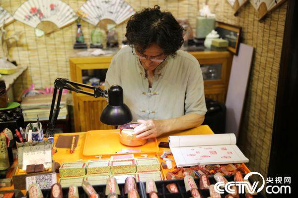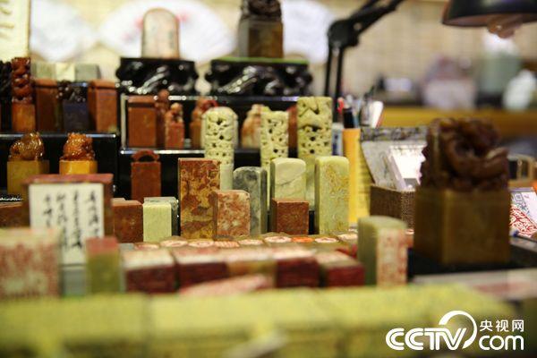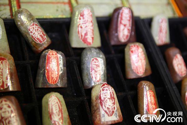 A real artwork is never completed by chance; neither are the seals from Master Wang Xuebo's hands, behind which there are elaborated work and careful thoughts. He has been in this field for more than 15 years and has carved more than 1,000 seals. Sometimes, when he has inspiration, a seal can be made without any scripts. Wang dresses simply and lives in a 3-square-meter workshop. There is barely space for him to sit, excluding a shelf on the wall and a workbench full of seals, books, brush pens and other tools. But it is a place he would like to stay for a whole week. Wang is confident in his works; he always says, “Seal-engraving entails skills and crafts, which attracts customers even in a fiercely competitive market." (Photo/CCTV.com)