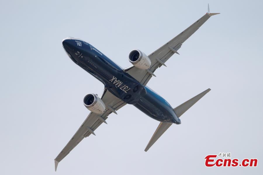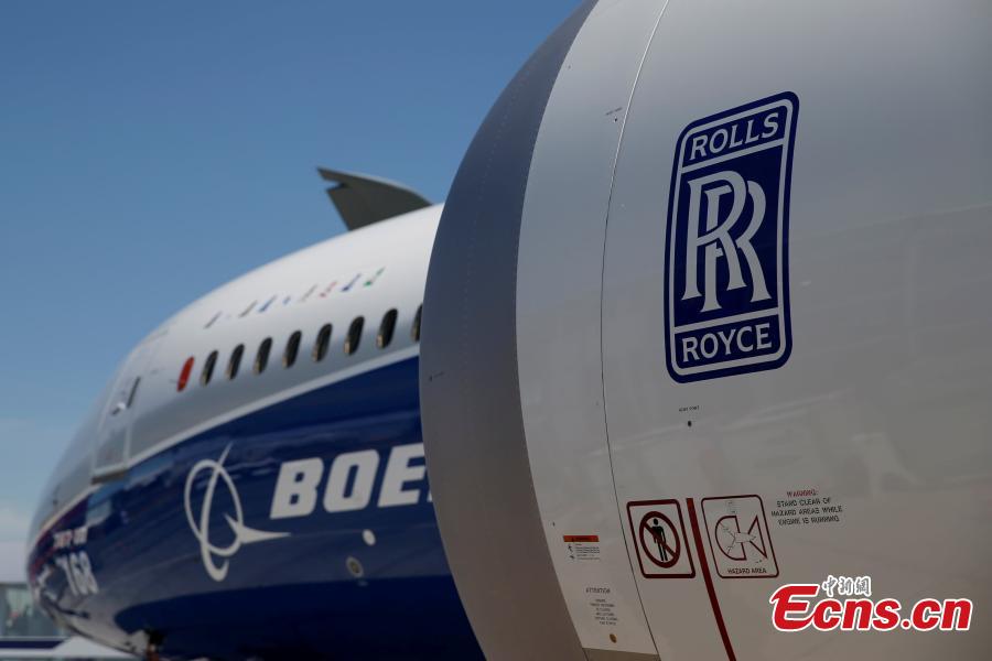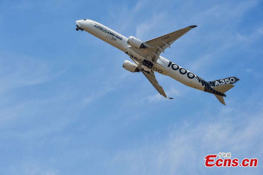 A visitor poses with the Chinese UAV Yilong-2 drone at the 52nd International Paris Air Show, June 20, 2017. (Photo/Agencies)