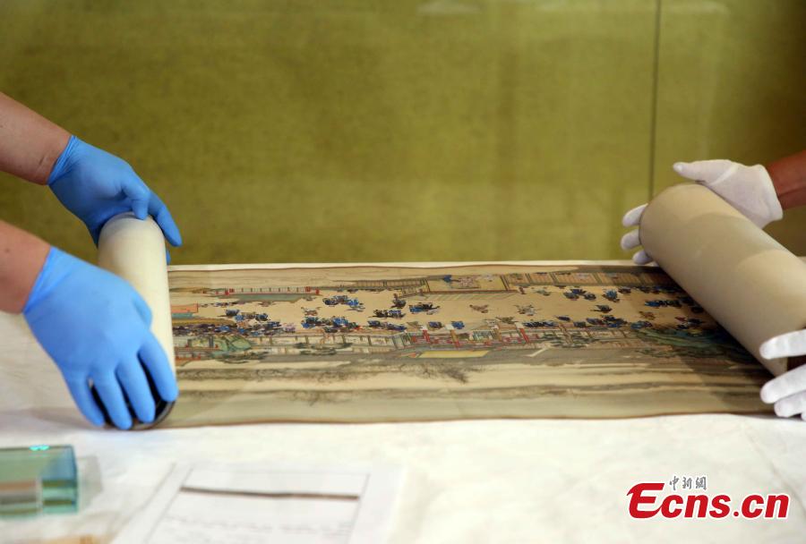 One of the treasures, a painting scroll titled Birthday Celebration of Empress Dowager Chongqing, was presented as a gift from Emperor Qianlong to his mother at her 60th birthday.