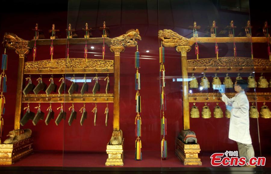The third treasure was a set of bronze bells with a surface casting a dragon and cloud motifs.
