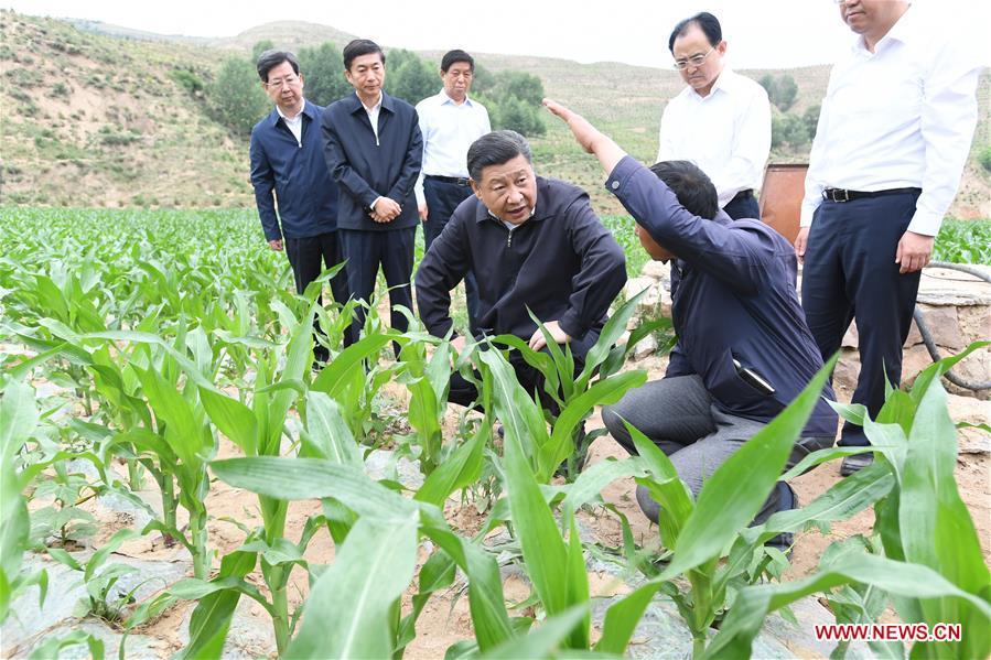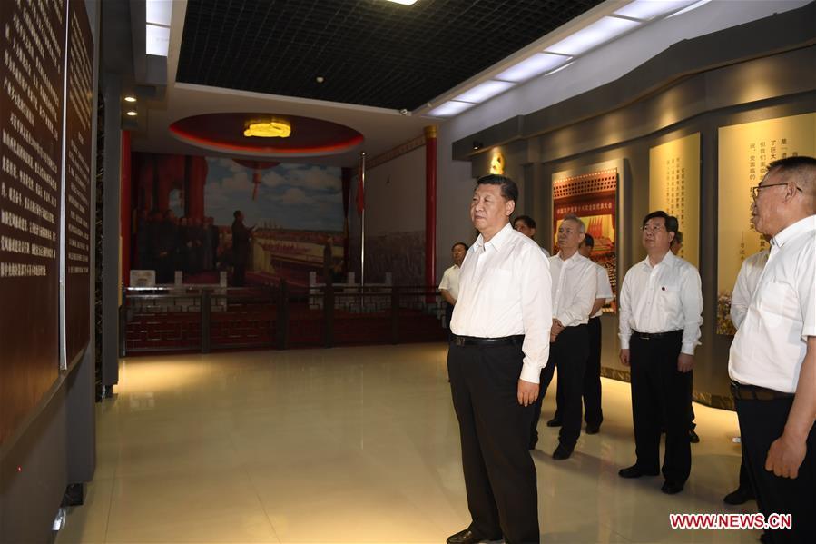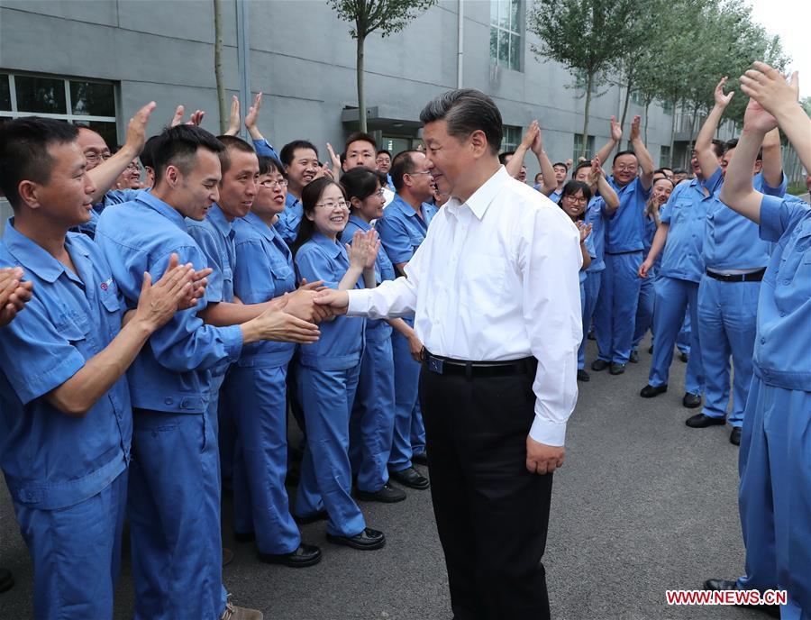 Chinese President Xi Jinping (C) visits Gangke carbon material company in Taiyuan, capital of north China's Shanxi Province, June 22, 2017. Xi inspected enterprises in Shanxi on Thursday. (Xinhua/Pang Xinglei)