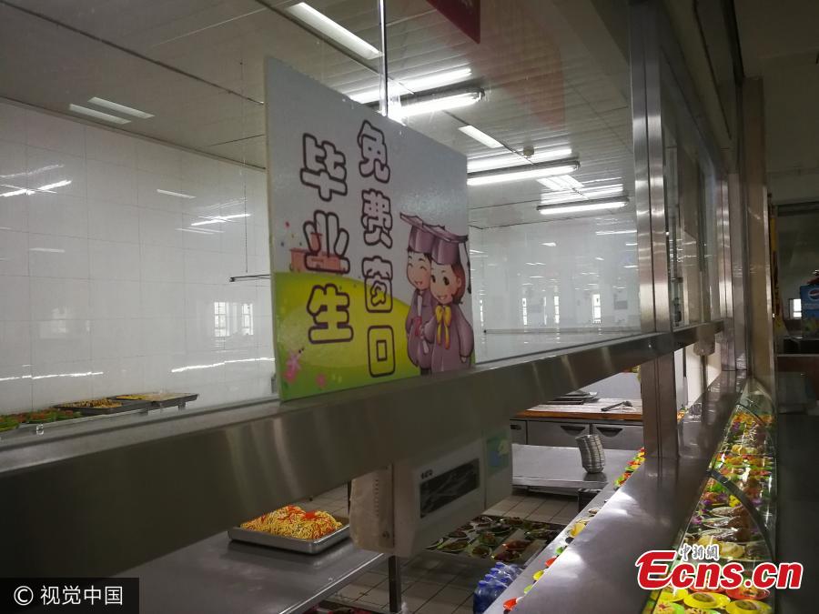 Graduates receive a free dinner at the end of their studies in Jilin University in Changchun City, the capital of Northeast China’s Jilin Province. The university offered a free dinner for its graduates, including 8,333 undergraduates, 7,450 postgraduates and 228 foreign students, at a cost of roughly 200,000 yuan ($29,200). (Photo/VCG)