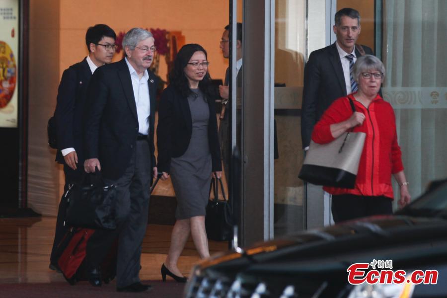 Terry Edward Branstad (L2), the U.S. Ambassador to China, arrives at Capital International Airport in Beijing, June 27, 2017. (Photo: China News Service/Wang Jun)