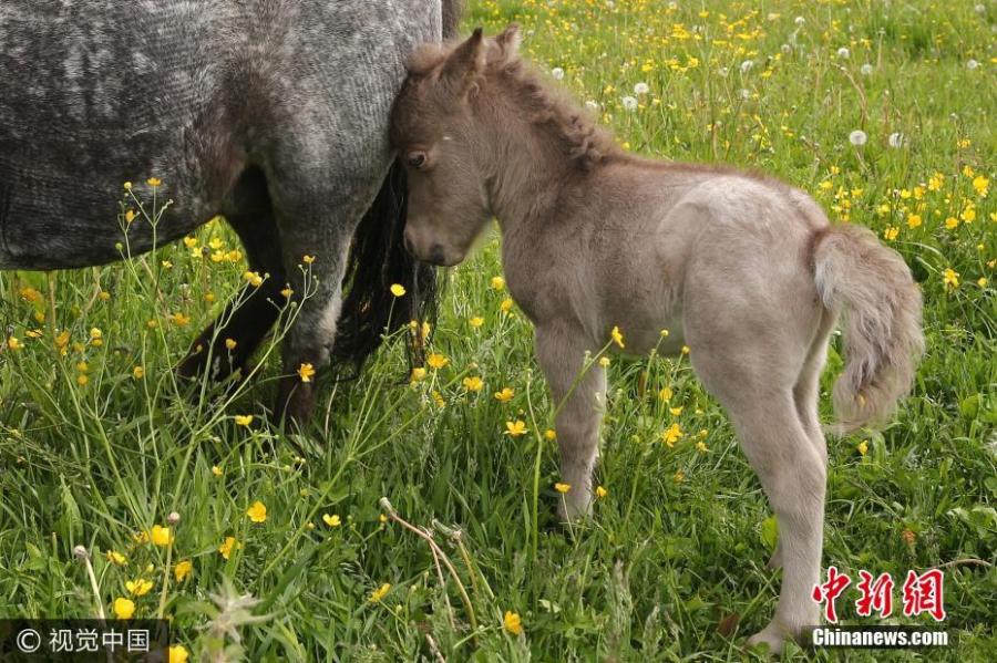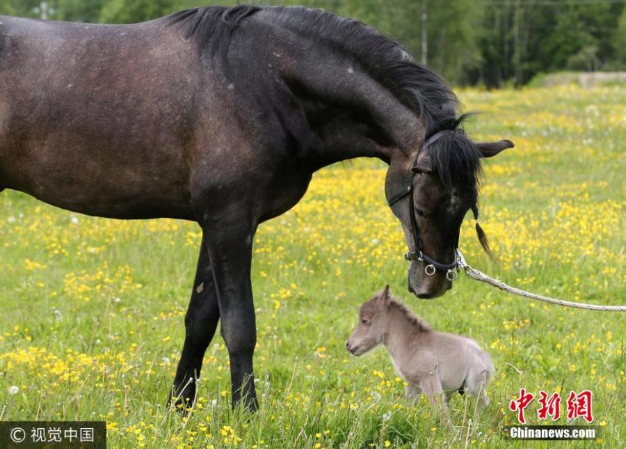 A miniature horse foal named Gulliver is photographed at the Hidalgo farm for breeding American miniature horses in the village of Skotnoye in Leningrad Region, Russia, June 24, 2017. The foal was born a week ago, measuring 30cm tall and weighing 3kg, and it is to set a Guinness world record. (Photo/Agencies)