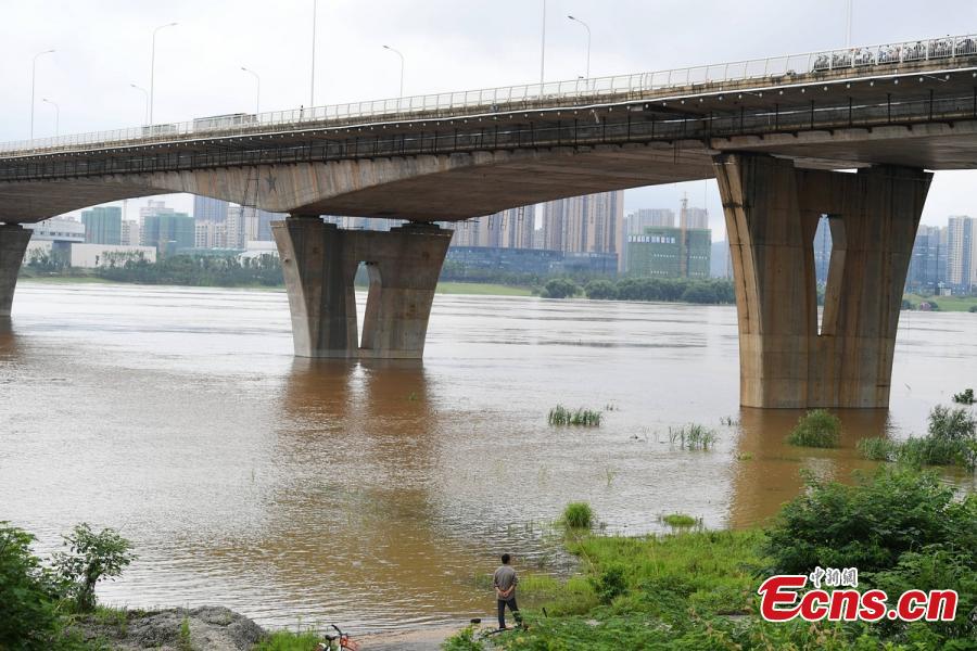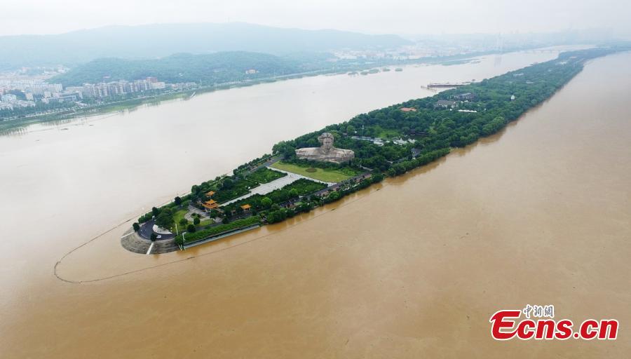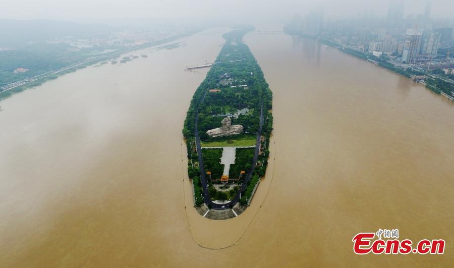 Water floods the sightseeing platform on Orange Isle in Changsha City, the capital of Central China’s Hunan Province, June 28, 2017. Continuous rainfall has caused water to rise quickly in the Xiangjiang River. (Photo: China News Service/Yang Huafeng)