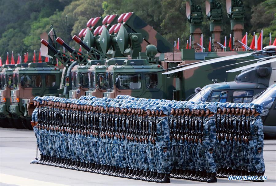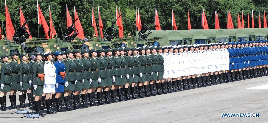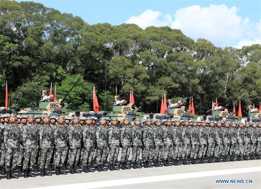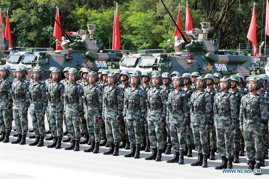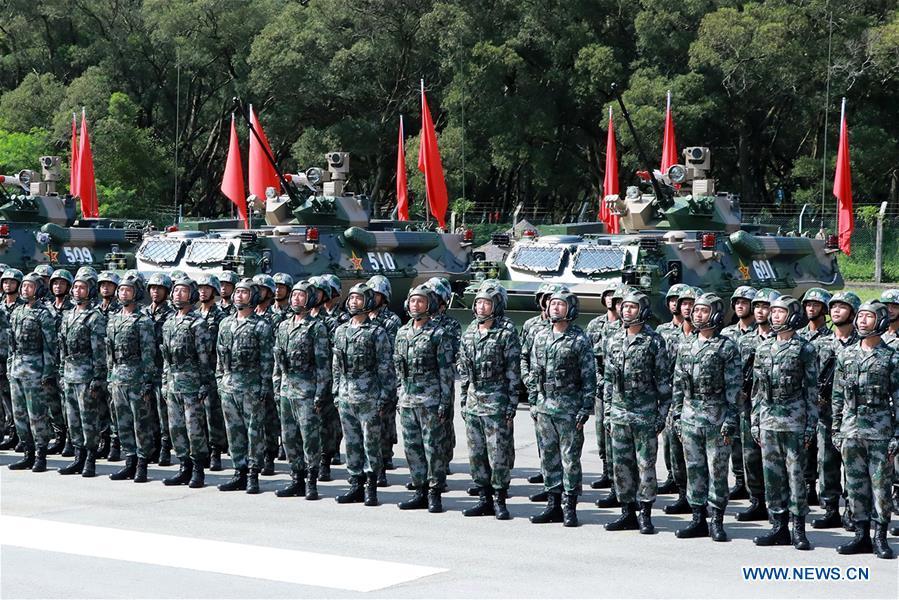 Soldiers of Chinese People's Liberation Army (PLA) Garrison in the Hong Kong Special Administrative Region (HKSAR) are seen at Shek Kong barracks in Hong Kong, south China, June 30, 2017. Chinese President Xi Jinping, also general secretary of the Central Committee of the Communist Party of China and chairman of the Central Military Commission, on Friday inspected the PLA Garrison in the HKSAR at Shek Kong barracks. (Xinhua/Li Gang)