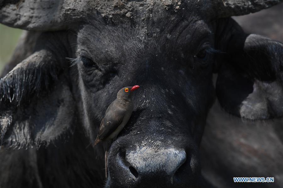 Photo taken on June 20, 2017 shows warthogs in the Lake Nakuru National Park, Kenya. Lake Nakuru lies to the south of Nakuru, in the rift valley of Kenya and is protected by Lake Nakuru National Park. The lake's abundance of algae attracts a vast quantity of flamingos that famously lined the shore. Other birds also flourish in the area, as do warthogs, baboons and other large mammals. Eastern black rhinos and southern white rhinos have also been introduced. (Xinhua/Chen Cheng)