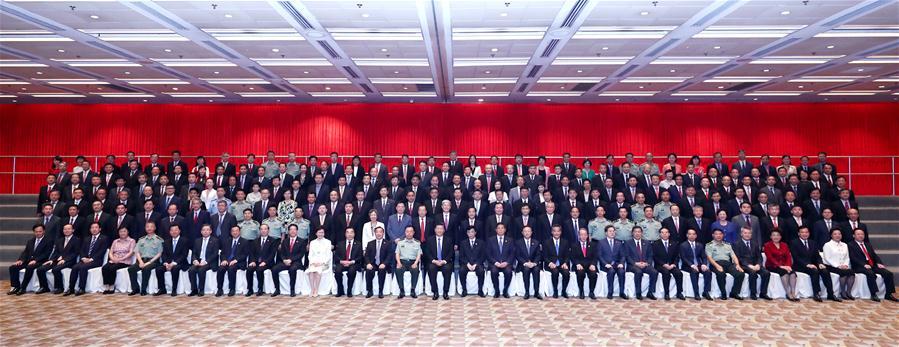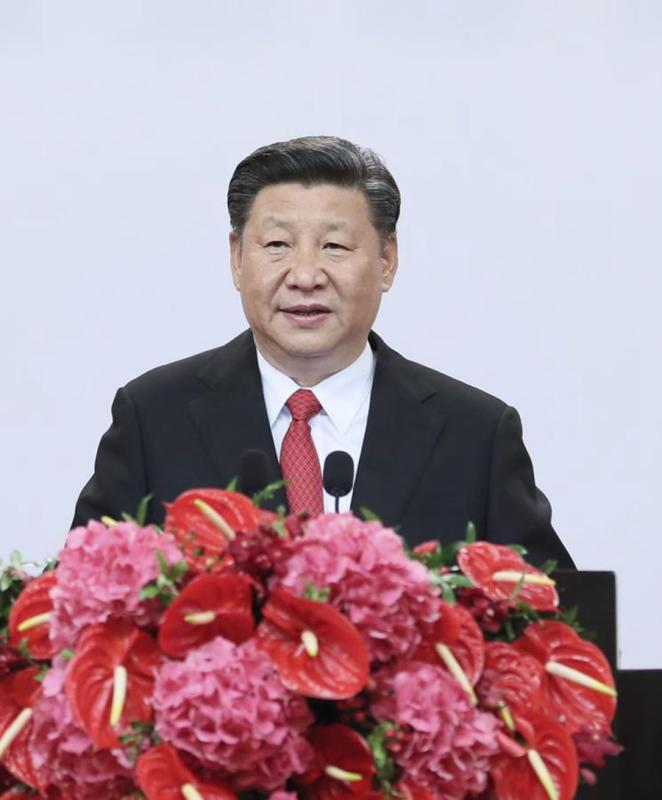 President Xi Jinping joins the chorus after the grand variety show on Friday at the Hong Kong Convention and Exhibition Centre as part of the event celebrating the 20th anniversary of Hong Kong's return to the motherland. EDMOND TANG/CHINA DAILY