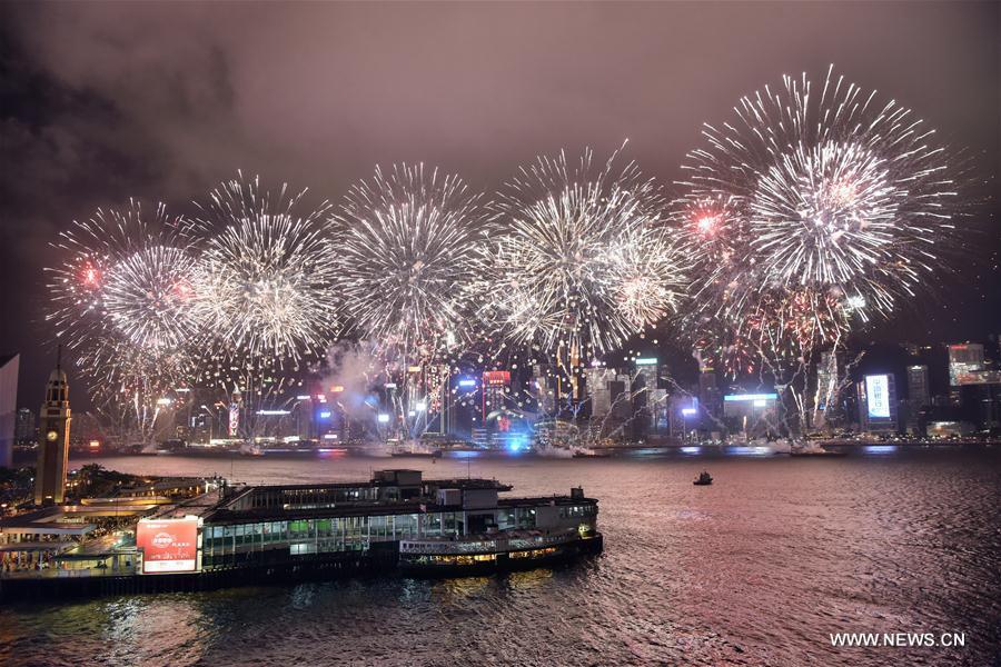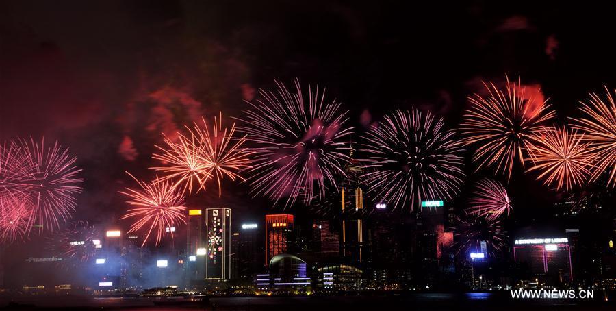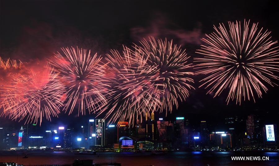 Fireworks light up the sky during a fireworks show to mark the 20th anniversary of Hong Kong's return to the motherland in Hong Kong, south China, July 1, 2017. (Xinhua/Qin Qing)