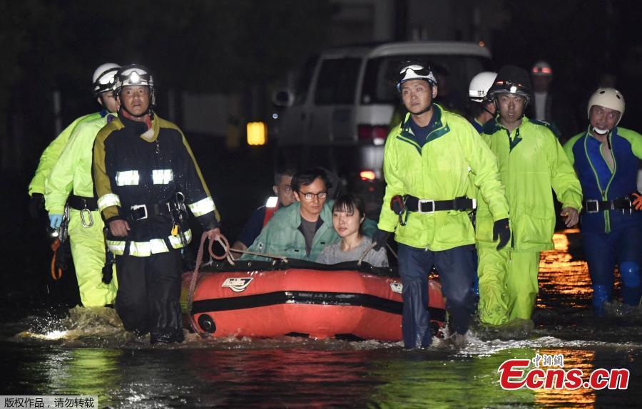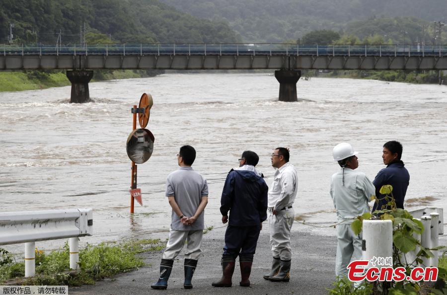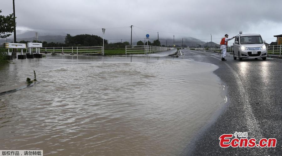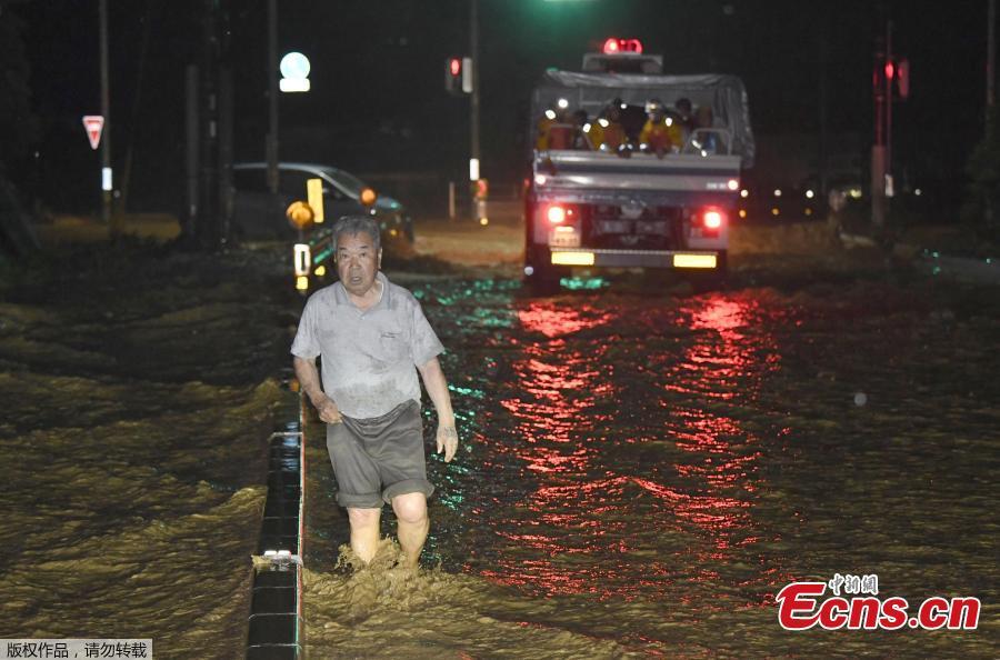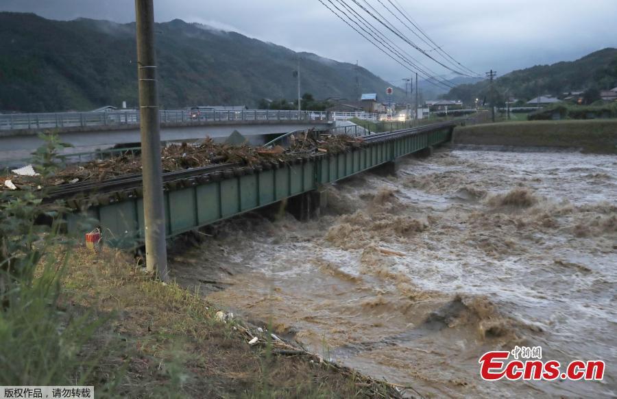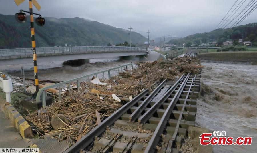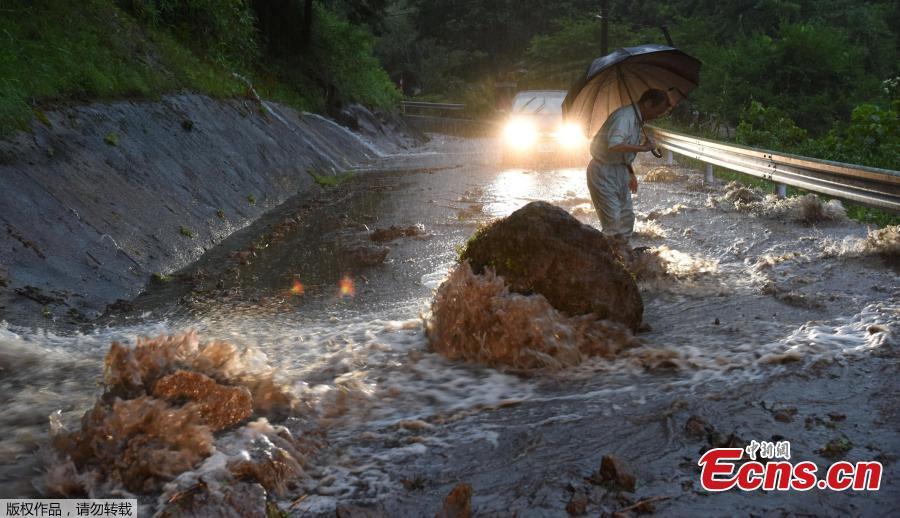 A flooded road with fallen rocks is pictured in Hita in Oita Prefecture, Japan, after torrential rain hits, in this photo taken on July 5, 2017. (Photo/Agencies)