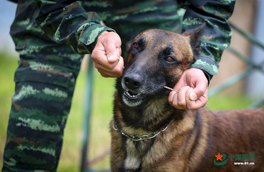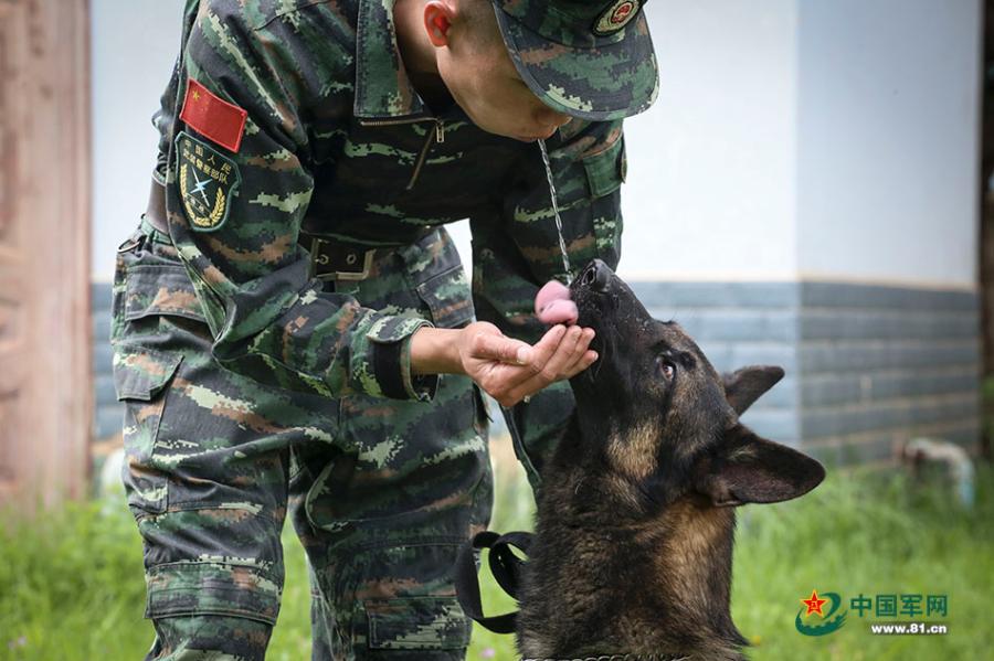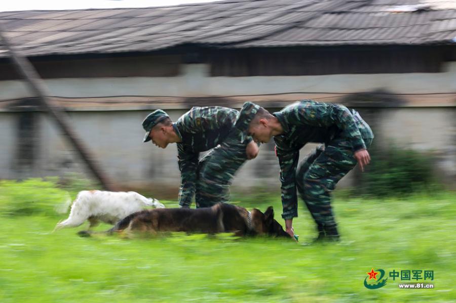 Police dogs undergo training at the armed police squadron in southwestern China’s Yunnan province. The dogs were trained in search and rescue, explosive detection, and on how to attack on command. (Photo/81.cn)