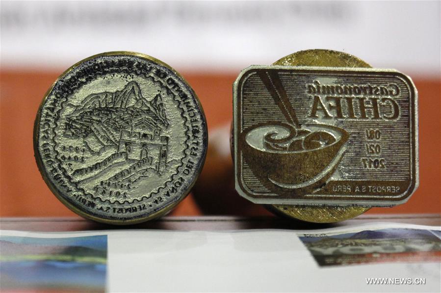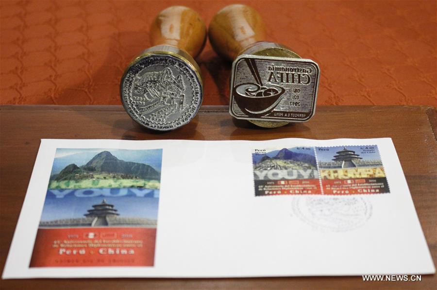 Photo taken on July 18, 2017 shows the postmarks created for the commemoration of 45 years of diplomatic ties between Peru and China, in Lima. Peru on Tuesday issued two new series of stamps and postmarks to celebrate its longstanding ties with China. (Xinhua/Luis Camacho) Peru Tuesday issued two new series of stamps and postmarks to celebrate its longstanding ties with China. The first series features images of Beijing's Temple of Heaven and Peru's Inca city of Machu Picchu, along with the words "Youyi" and "Khumpa," which mean friendship in Chinese and Quechua respectively. "It is the fruit of Peruvian-Chinese friendship, highlighting 45 years of diplomatic ties," Eduardo Yong, president of the Peruvian-Chinese Cultural Institute, said during the presentation of the series at the Peruvian postal service.