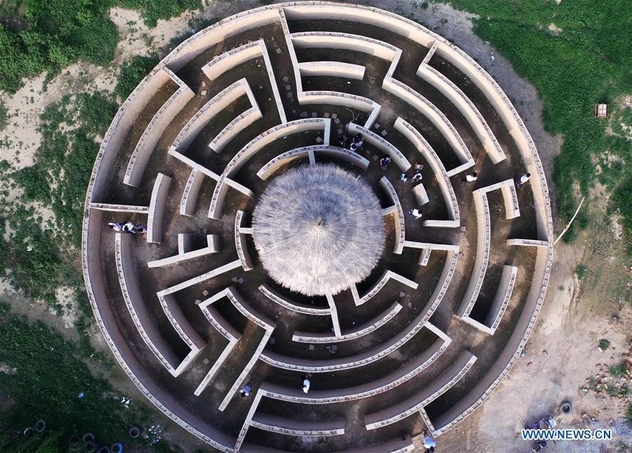 Photo taken on July 19, 2017 shows a maze in an education-characteristic town in Guantao County, north China's Hebei Province. The county built some characteristic towns to promote tourism and alleviate poverty since 2014. (Xinhua/Mu Yu)