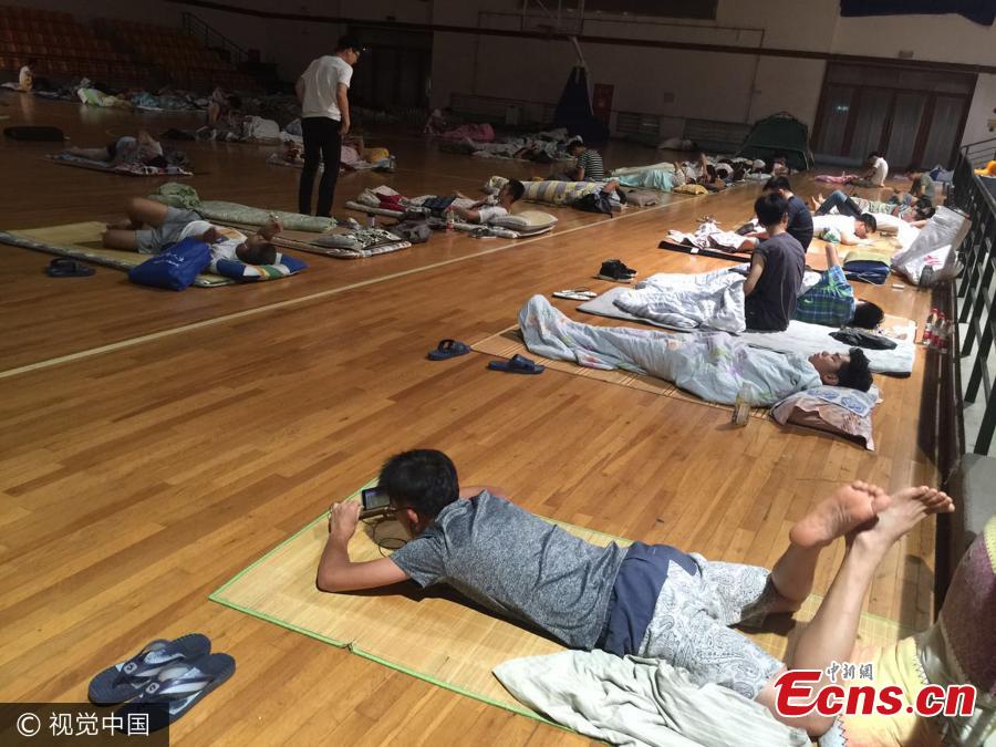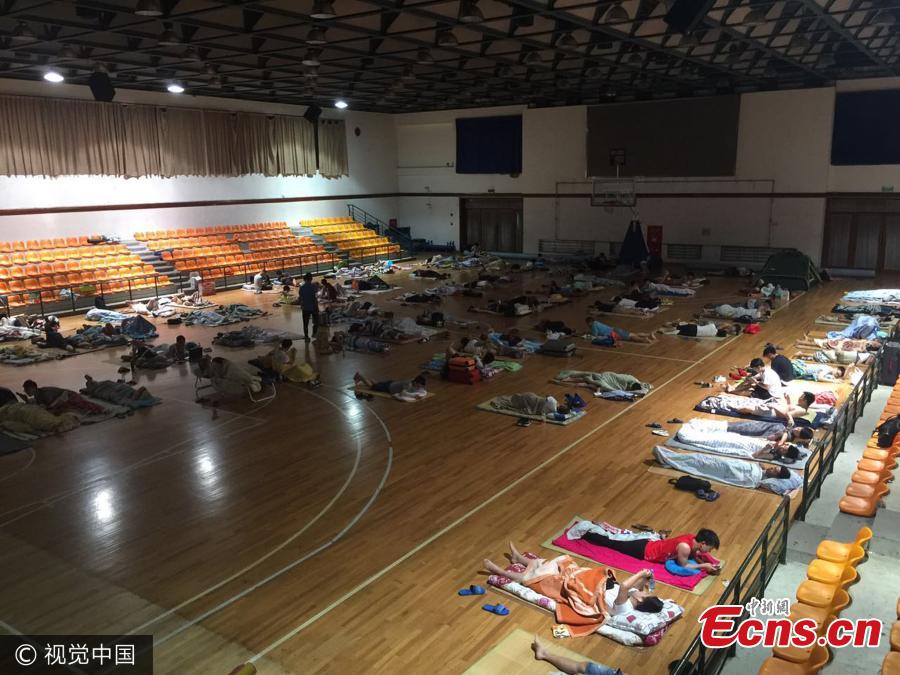Male students sleep in a stadium on the Xuhui Campus of Shanghai Normal University in Shanghai, July 19, 2017. The air-conditioned stadium became a sleeping choice of many college students during the summer vacation as temperatures in the city hit 36 degrees centigrade. Students need to bring only bedding, their student card and an ID to stay. The stadium also has a zone for female students, but none have arrived to sleep. (Photo/VCG)