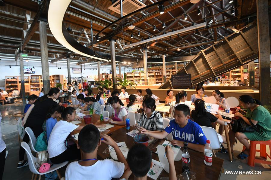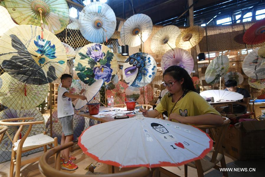 People visit a fan museum by the Grand Canal in Hangzhou, east China's Zhejiang Province, July 20, 2017. A cultural and scenic belt, including museums, cultural and creative zones, historical relics and ancient streets, has formed along the 12-kilometer-long section of the Beijing-Hangzhou Grand Canal in Gongshu District of Hangzhou. (Xinhua/Huang Zongzhi)
