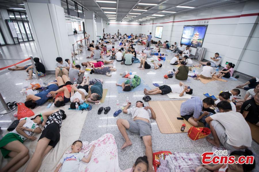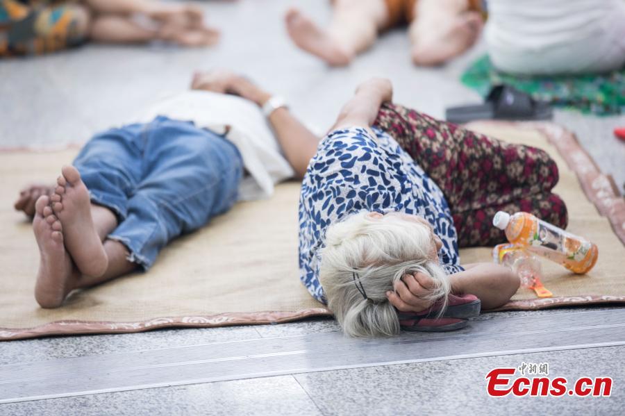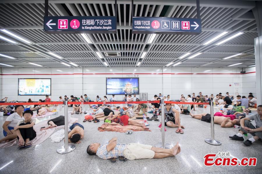 Residents enjoy the cool air at a subway station in Hangzhou City, the capital of East China’s Zhejiang Province, July 23, 2017. Temperatures of close to 40 degrees centigrade were recorded in the city, and authorities issued a red-level warning in response to the sweltering summer heat. (Photo: China News Service/Zhong Yanming)