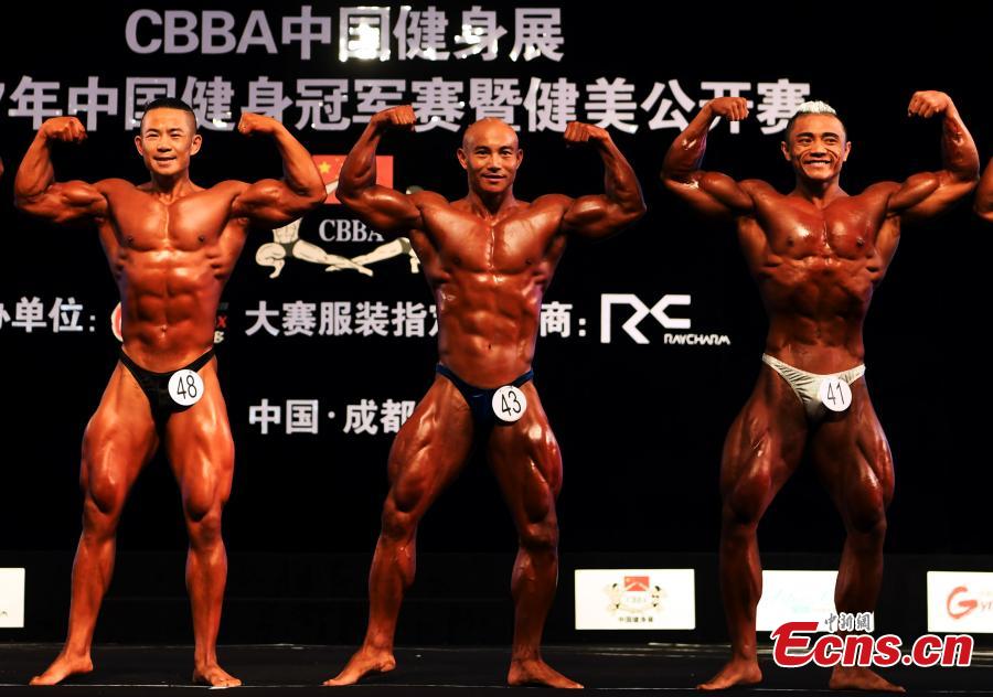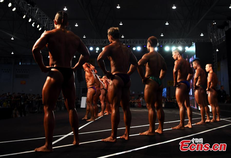 Participants pose during the China Fitness 2017 event in Chengdu City, the capital of Southwest China’s Sichuan Province, July 22, 2017. More than 600 professional athletes took part in China’s largest bodybuilding and fitness contest, which was organized by the Chinese Bodybuilding Association. There were four categories in the event – men’s classic bodybuilding, men’s bodybuilding, men's physique and women’s bikini-fitness. (Photo: China News Service/An Yuan)