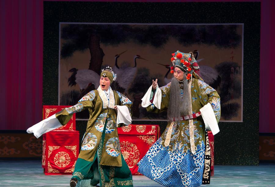 Actors make up for a perfromance of "Sixian", a traditional local opera with a history of more than 500 years, at a theater in Shijiazhuang, capital of North China's Hebei Province, July 22, 2017. "Sixian" has been listed as one of the national intangible cultural heritages. (Photo/Xinhua)