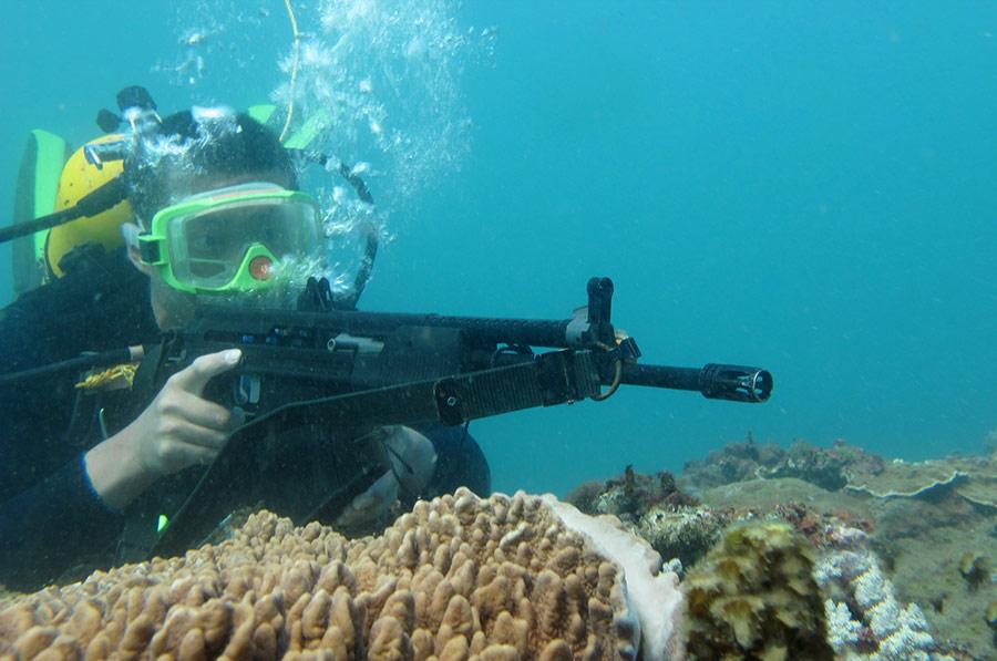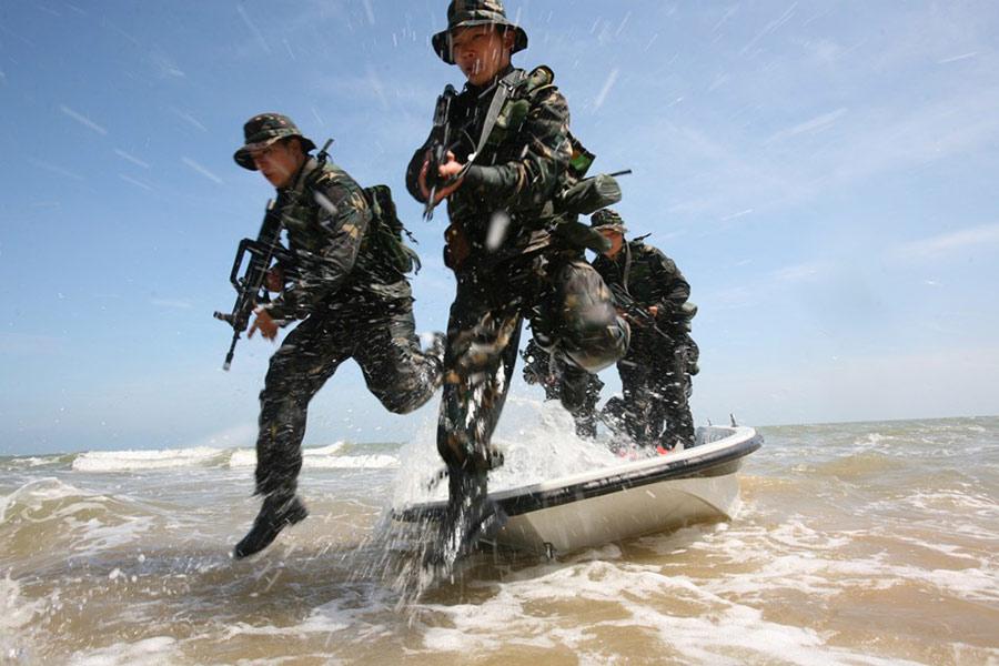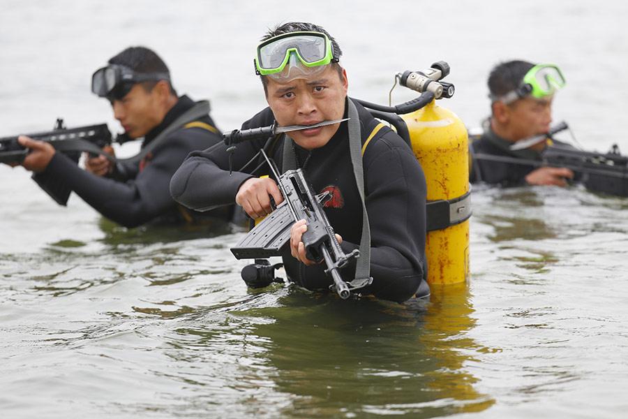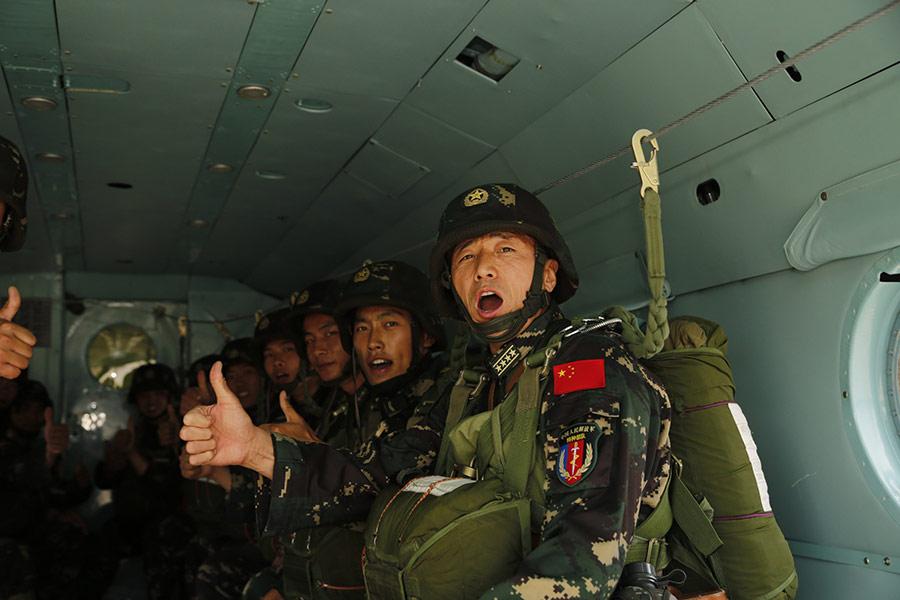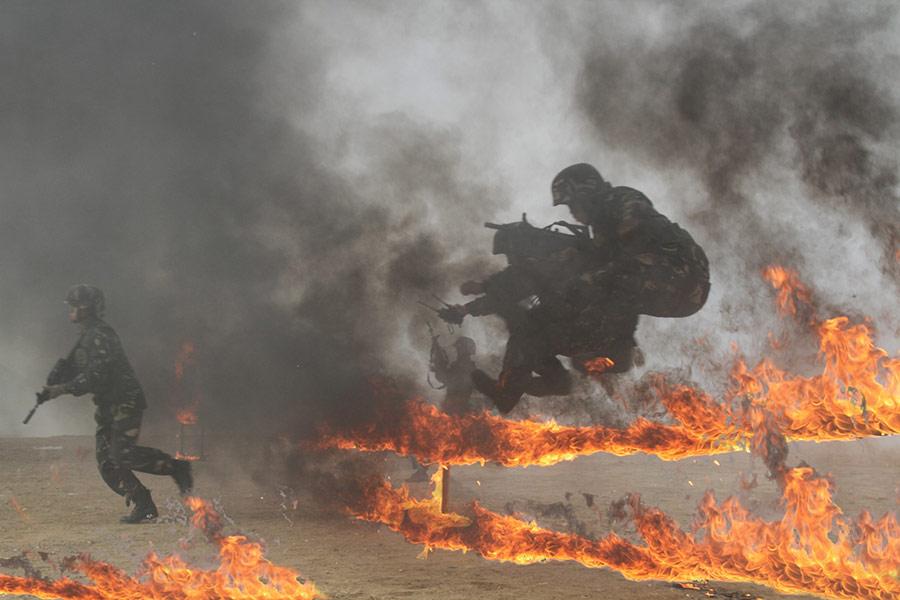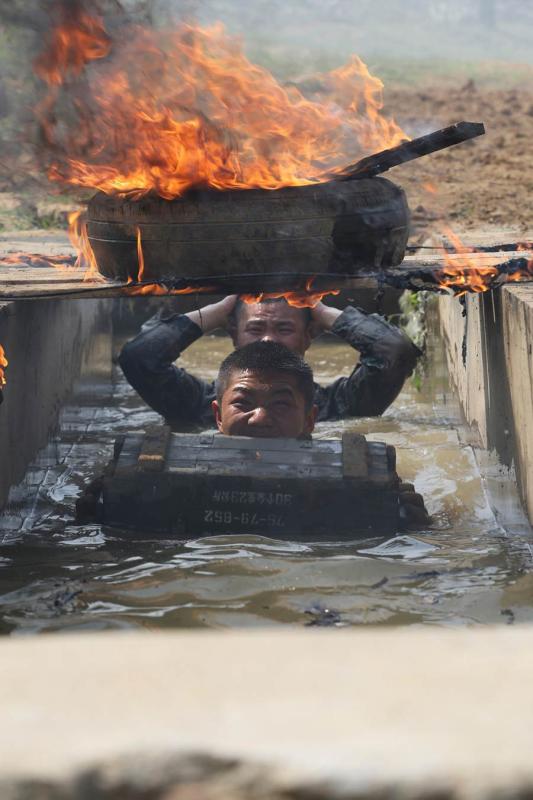 A soldier takes part in a training course. (Photo provided to chinadaily.com.cn)