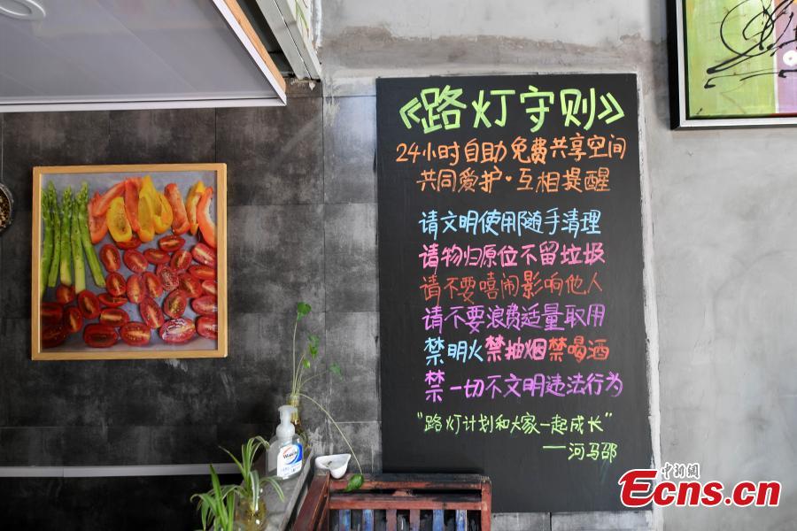 From cars to bikes and umbrellas, the sharing economy has seen a rapid growth in China, in many forms. Entrepreneur Shao Dongqiang has launched a new service, sharable spaces, in Xiamen City, East China’s Fujian Province. The 120-sqm room is well equipped with a comfortable sofa, wooden desks, snacks, drinks, flowers and books. It’s open 24 hours to visitors. Shao has called the initiative ‘Street Lamp', saying he wants anyone to feel welcomed and supported in the space. (Photo: China News Service/Lyu Ming)