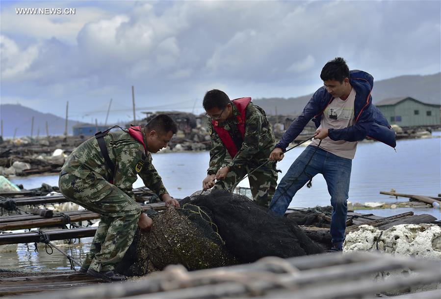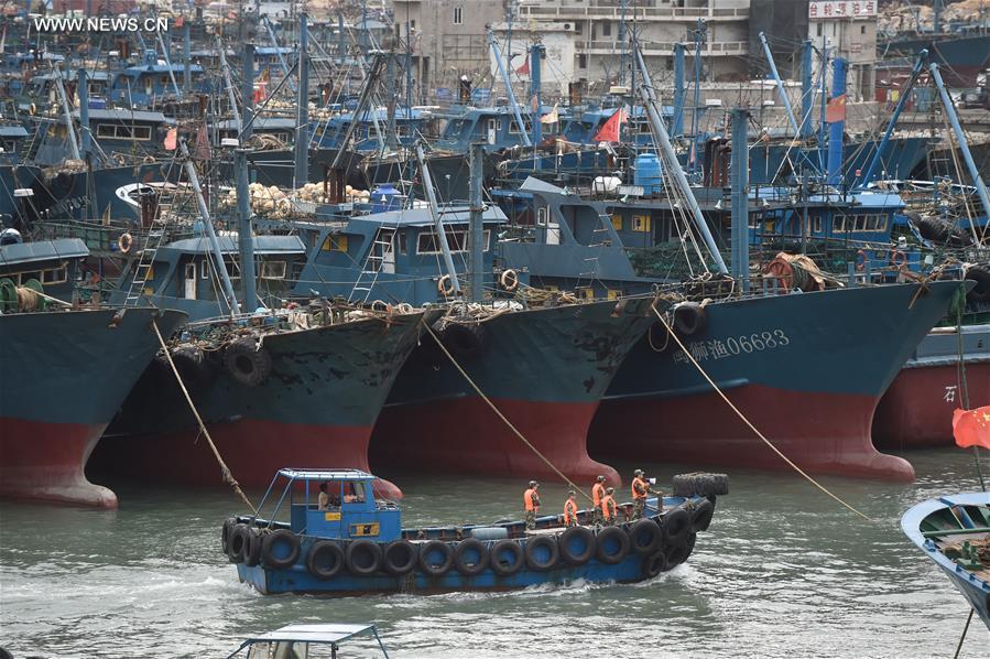 Boats anchor in the fishing port before the typhoon Nesat, the ninth typhoon this year, arrives in Shishi City of southeast China's Fujian Province July 29, 2017. Fujian meteorological station said the 10th typhoon had been also formed and was expected to land late Sunday or early next Monday in central to northern Fujian. (Xinhua/Song Weiwei)
