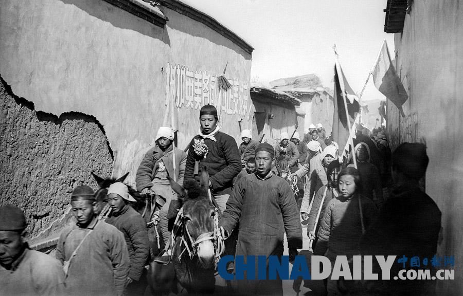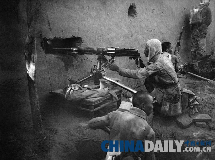 Chinese soldiers fight invaders at the Great Wall in Laiyuan, Hebei province, in 1942.