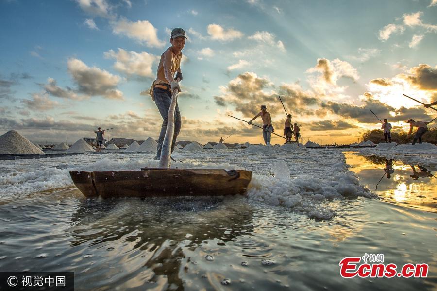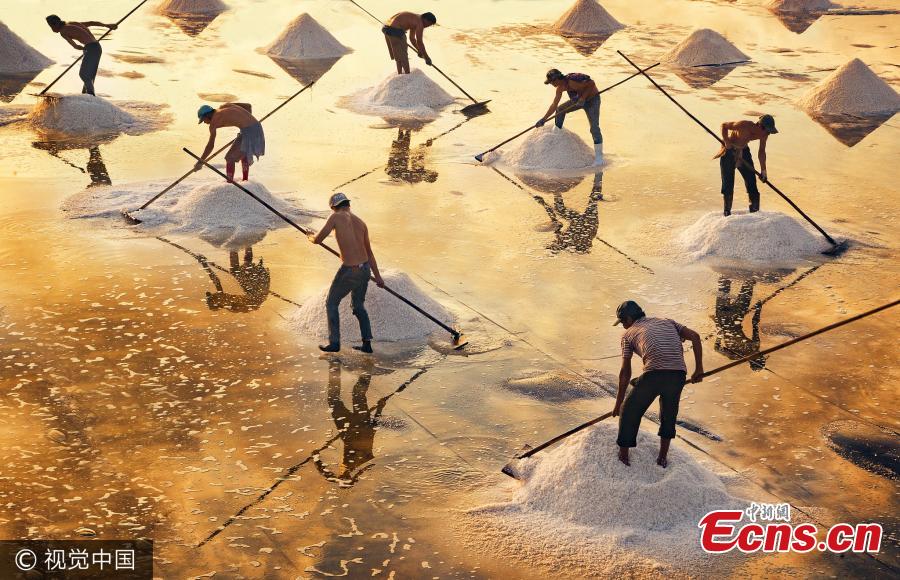 Workers spend hours in the sun separating salt from evaporating sea water in Bac Lieu province in Vietnam. The salt fields in Bac Lieu have long been in existence and provide a large amount of salt to the Mekong Delta. (Photo/Agencies)
