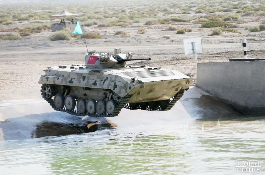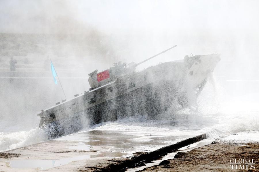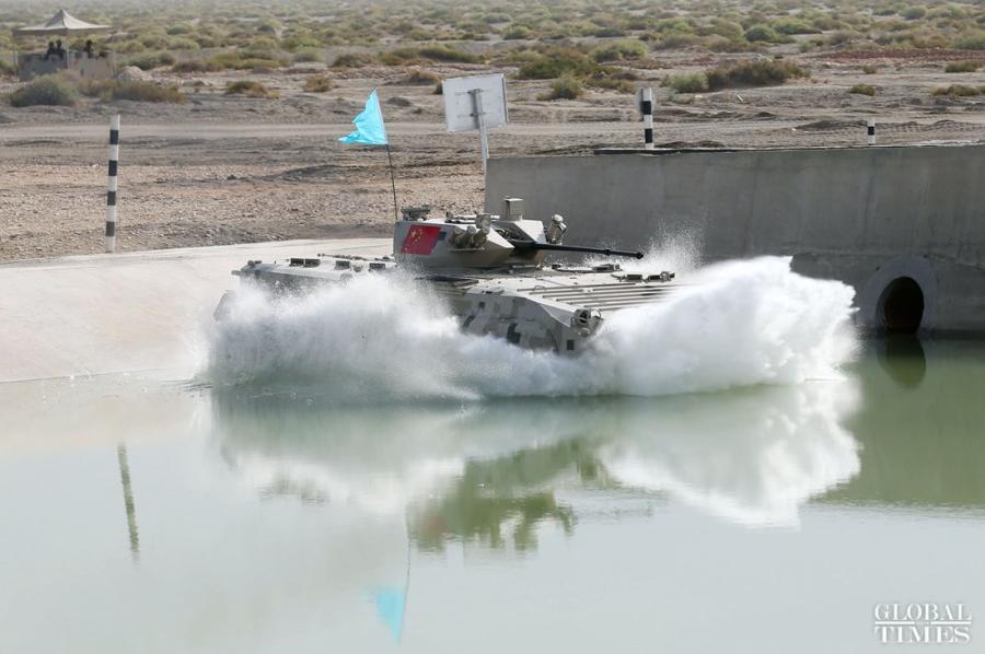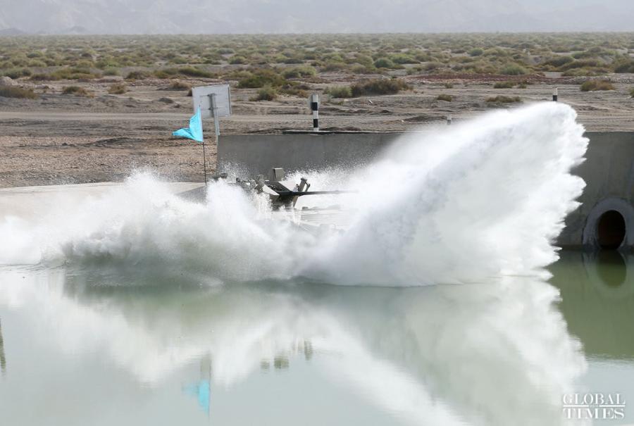 China-made 86A infantry fighting vehicle crosses the water barrier. (Photos: Cui Meng/GT)