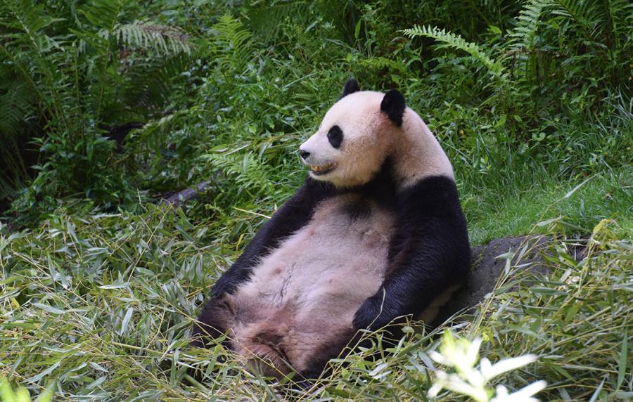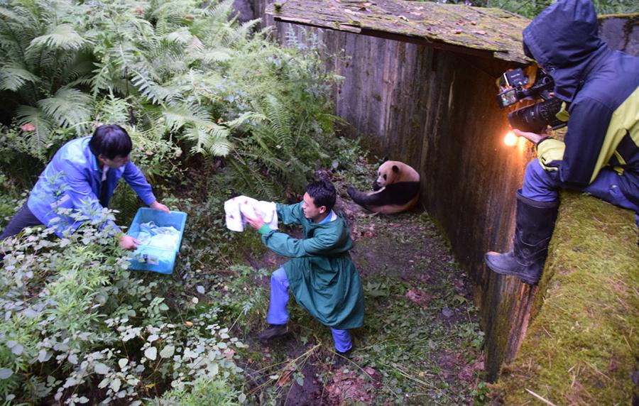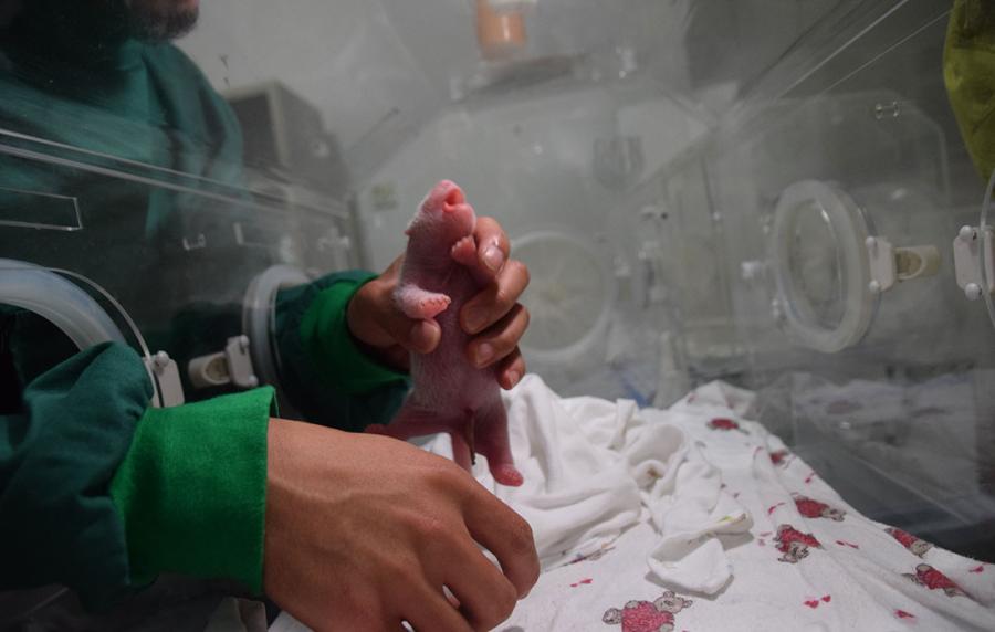Photo taken on July 31, 2017 shows the world's first giant panda cub with both captive and wild parents in southwest China's Sichuan Province. The world's first giant panda cub with both captive and wild parents was born early Monday in Sichuan Province. The cub marked success in experiments to encourage captive pandas to mate with wild pandas in order to increase the genetic diversity of the captive stock. (Photo/Xinhua)